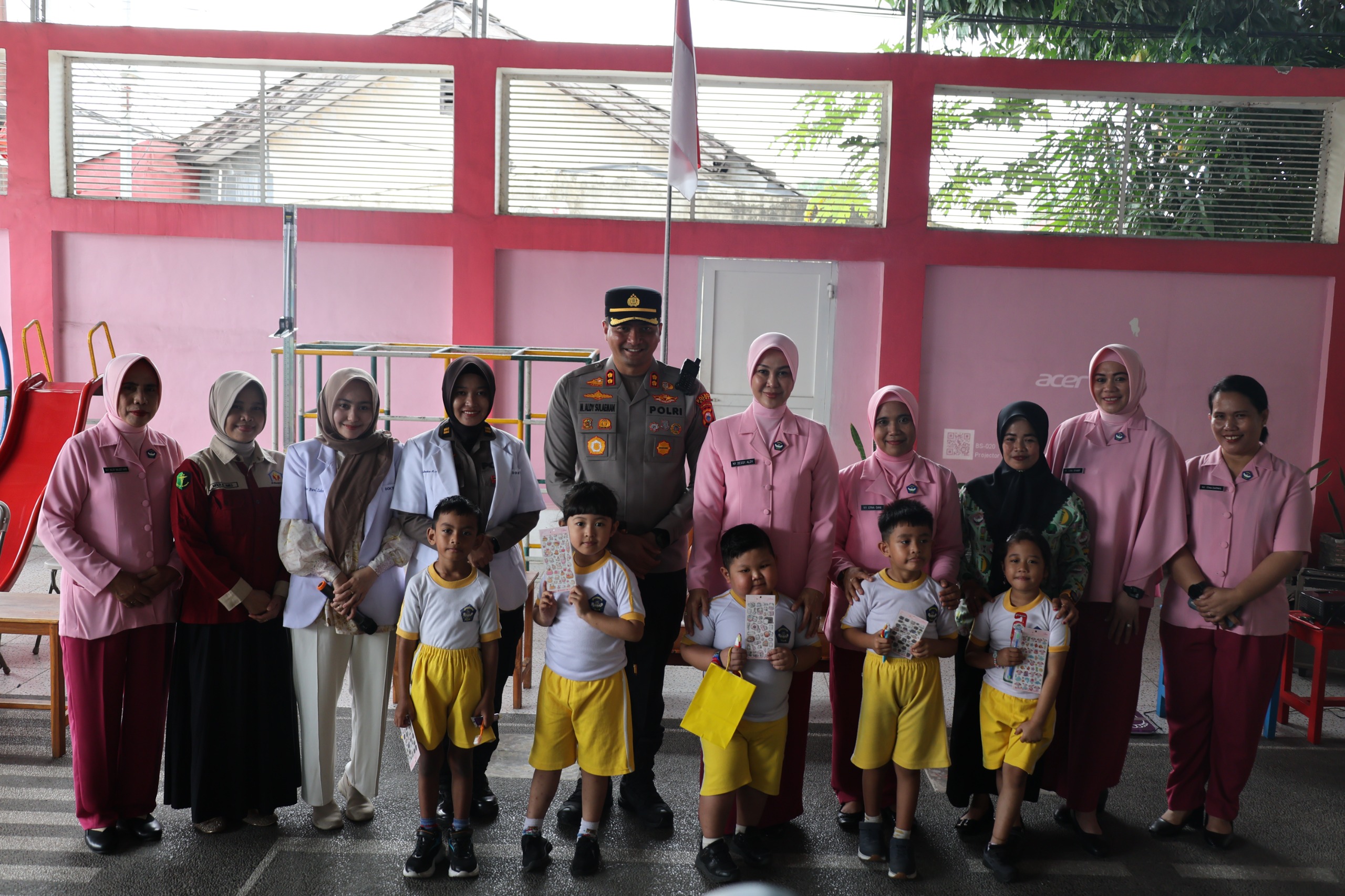 Kapolres Gowa AKBP Muh. Aldy Sulaiman, S.I.K., M.Si., didampingi Ketua Bhayangkari Cabang Gowa Ny. Dessy Aldy serta jajaran pengurus, menghadiri kegiatan pemeriksaan kesehatan gigi dan pemberian makanan tambahan di TK Kemala Bhayangkari 07 Cabang Gowa, Rabu (7/5/2025).