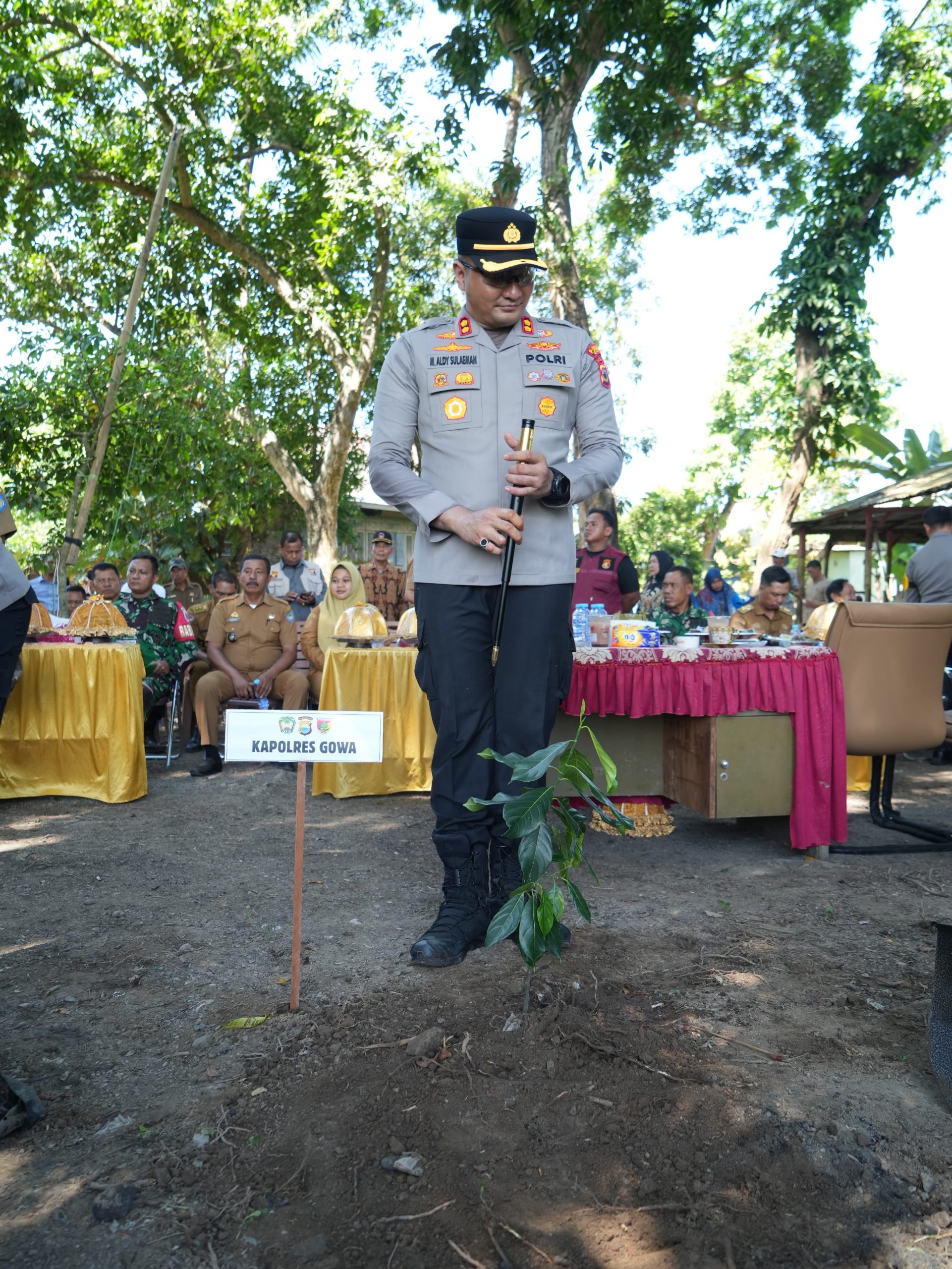 Penanaman pohon dilakukan secara simbolis oleh Kapolres Gowa bersama unsur Forkopimcam dan perangkat desa, dilanjutkan dengan pembagian pupuk organik kepada warga.
