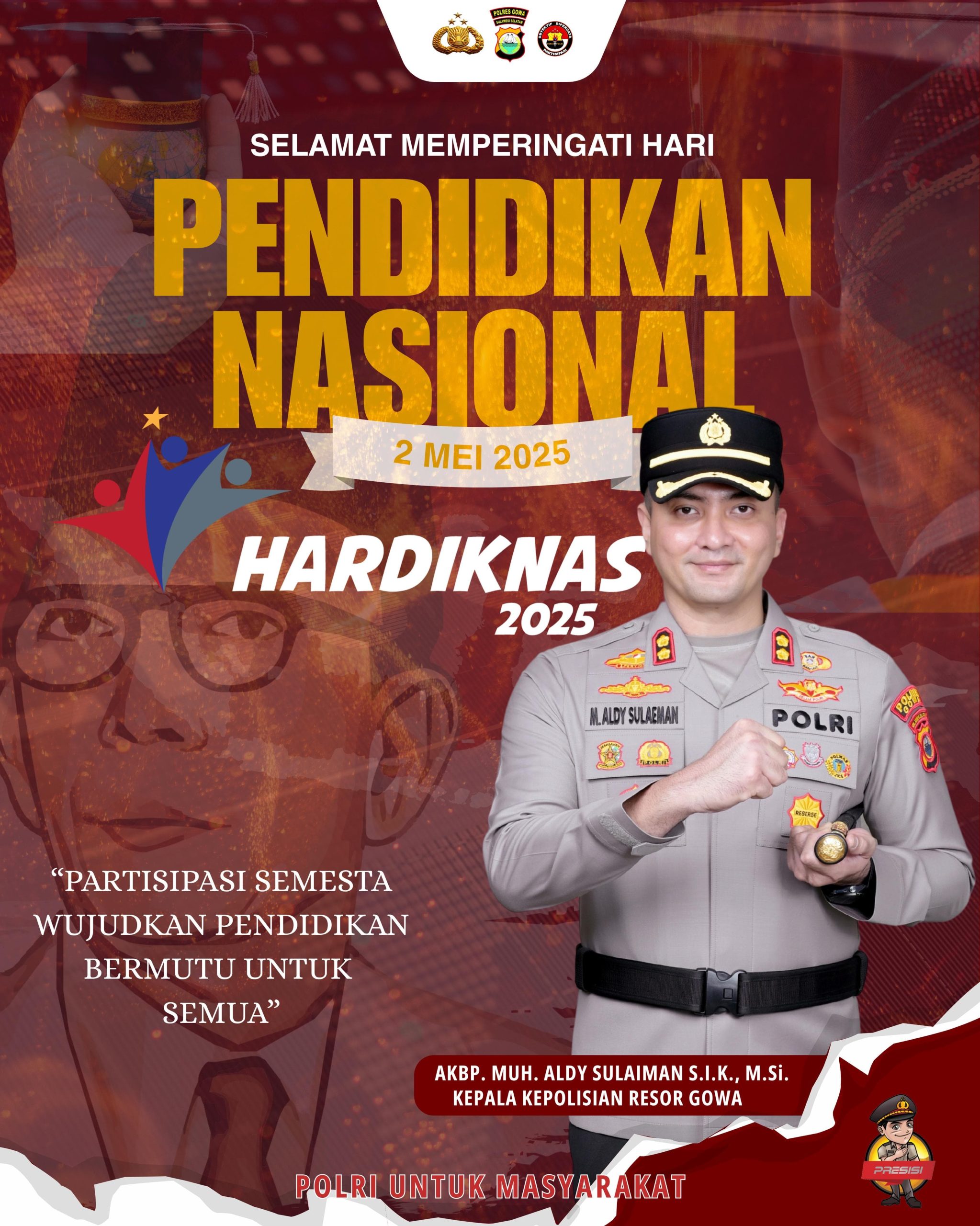 Dalam peringatan Hardiknas 2025 yang mengusung tema “Partisipasi Semesta Wujudkan Pendidikan Bermutu untuk Semua”, Kapolres Gowa mengajak seluruh elemen masyarakat untuk bersinergi dalam mendukung kemajuan dunia pendidikan.