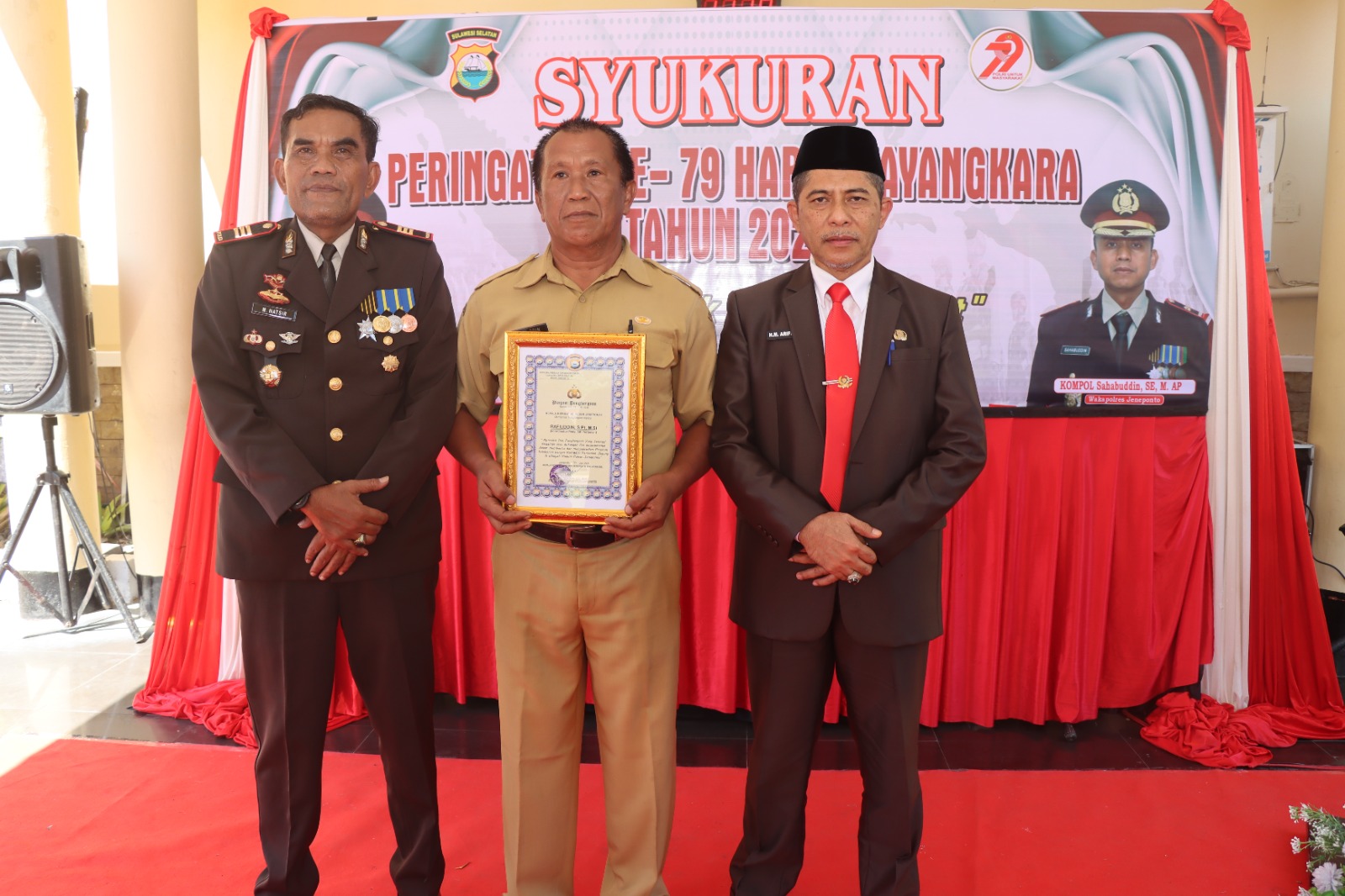 Pemberian penghargaan ini dilaksanakan dalam momentum acara syukuran memperingati Hari Bhayangkara ke-79, yang digelar di tribun Polres Jeneponto pada hari Selasa, 1 Juli 2025. Dalam kesempatan tersebut, secara simbolis penghargaan diserahkan oleh Sekretaris Daerah Kabupaten Jeneponto, Muh. Arifin Nur, SH., MH., mewakili Kapolres Jeneponto.