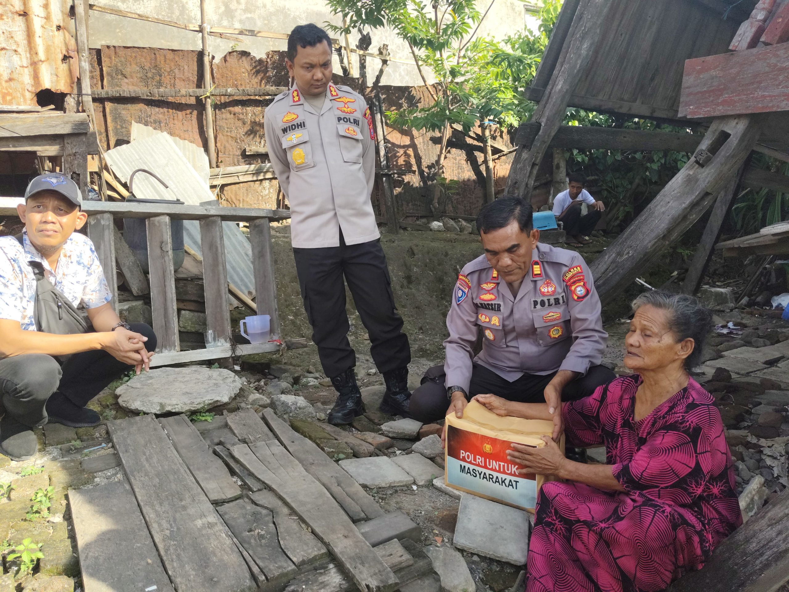 “Kami hadir di sini untuk memberikan dukungan moril dan sedikit bantuan yang semoga bisa meringankan beban ibu Saripa,” ujar Kapolres.