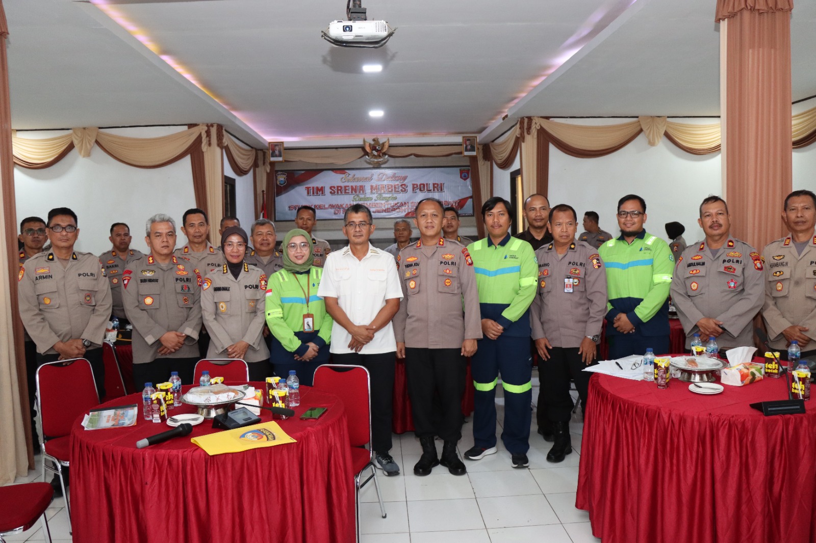 Kegiatan ini berlangsung di Aula Lantai 2 Polres Jeneponto dan dihadiri oleh AKBP Yudha Kesit Dwijayanto, S.H.,S.I.K (Wadir Pamomvid Polda Sulsel), AKBP WELLY ABDILLAH (Ketua Pendamping Tim Study Kelayakan Satpamobvid Dari Birorena Polda Sulsel), Riski Noor Adha (HSE Associate PT. Energi Bayu Jeneponto-PLTB Tolo) dan Para PJU Polres Jeneponto.