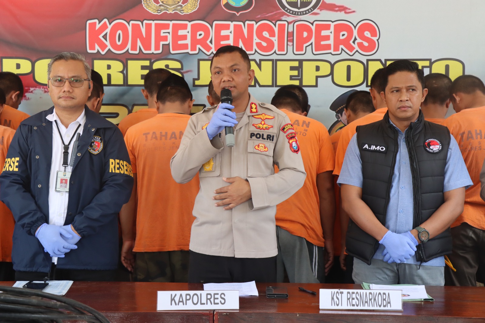 Sementara itu, dari Sat Narkoba, selama tiga bulan terakhir Polres Jeneponto berhasil mengungkap sembilan kasus narkotika dengan total 19 pelaku, terdiri dari dua orang anak, dua perempuan, salah satunya seorang ASN Pemkab Jeneponto. Dari hasil pengungkapan tersebut, barang bukti yang berhasil diamankan yakni sabu seberat 34,10 gram dan 388 butir obat daftar G.