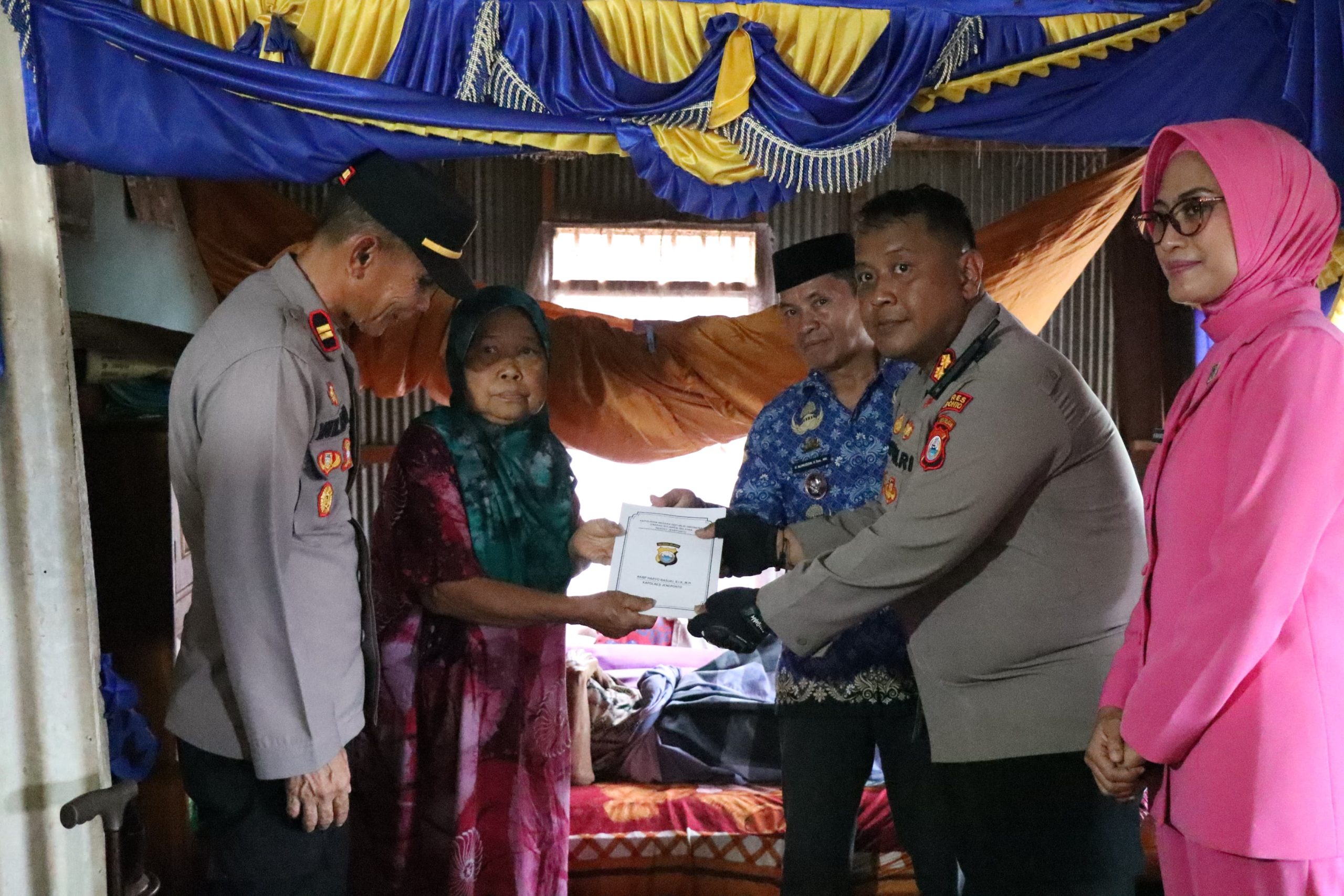 Kapolres Jeneponto Sambangi Warga Lumpuh, Salurkan Bantuan Sosial di Kelurahan Tolo Utara
