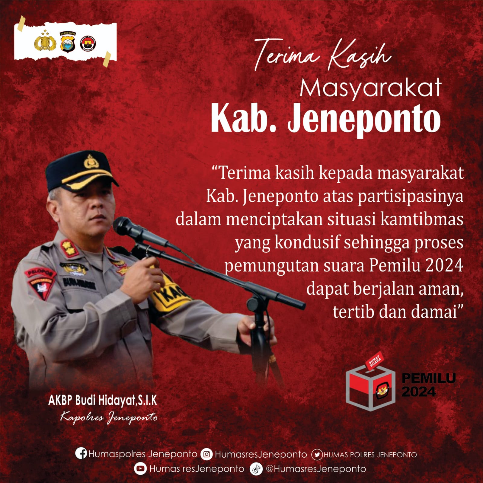 Kapolres Jeneponto : Terima Kasih Atas Pelaksanaan Pemilu Yang Aman Dan Kondusif