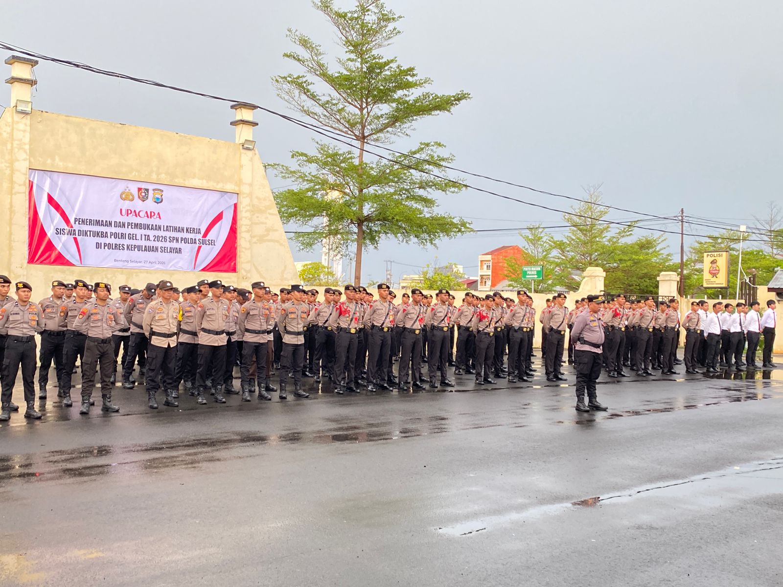 KEP.SELAYAR-Kapolres Kepulauan Selayar AKBP Didid Imawan, S.I.K., S.H., M.Tr. Mil. secara resmi membuka kegiatan Latihan Kerja (Latja) Siswa Diktukba Polri Gelombang I Tahun Anggaran 2026 yang digelar melalui upacara di Lapangan Apel Mapolres Kepulauan Selayar, Senin pagi, 27 April 2026.