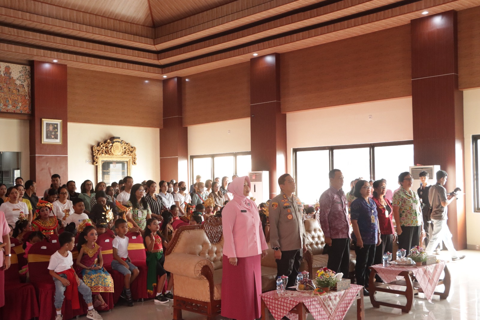 Kapolres Klungkung AKBP Umar, S.I.K.M.H didampingi Ketua YKB 5 Klungkung Ny Elisa Umar menghadiri Kegiatan Pelepasan dan Pentas Seni TK Kemala Bhayangkari 5 Klungkung Tahun Pelajaran 2023/2024 dengan Tema “Cerdas, Berkarakter Berdasar Pada Nilai Kebhayangkaraan.”