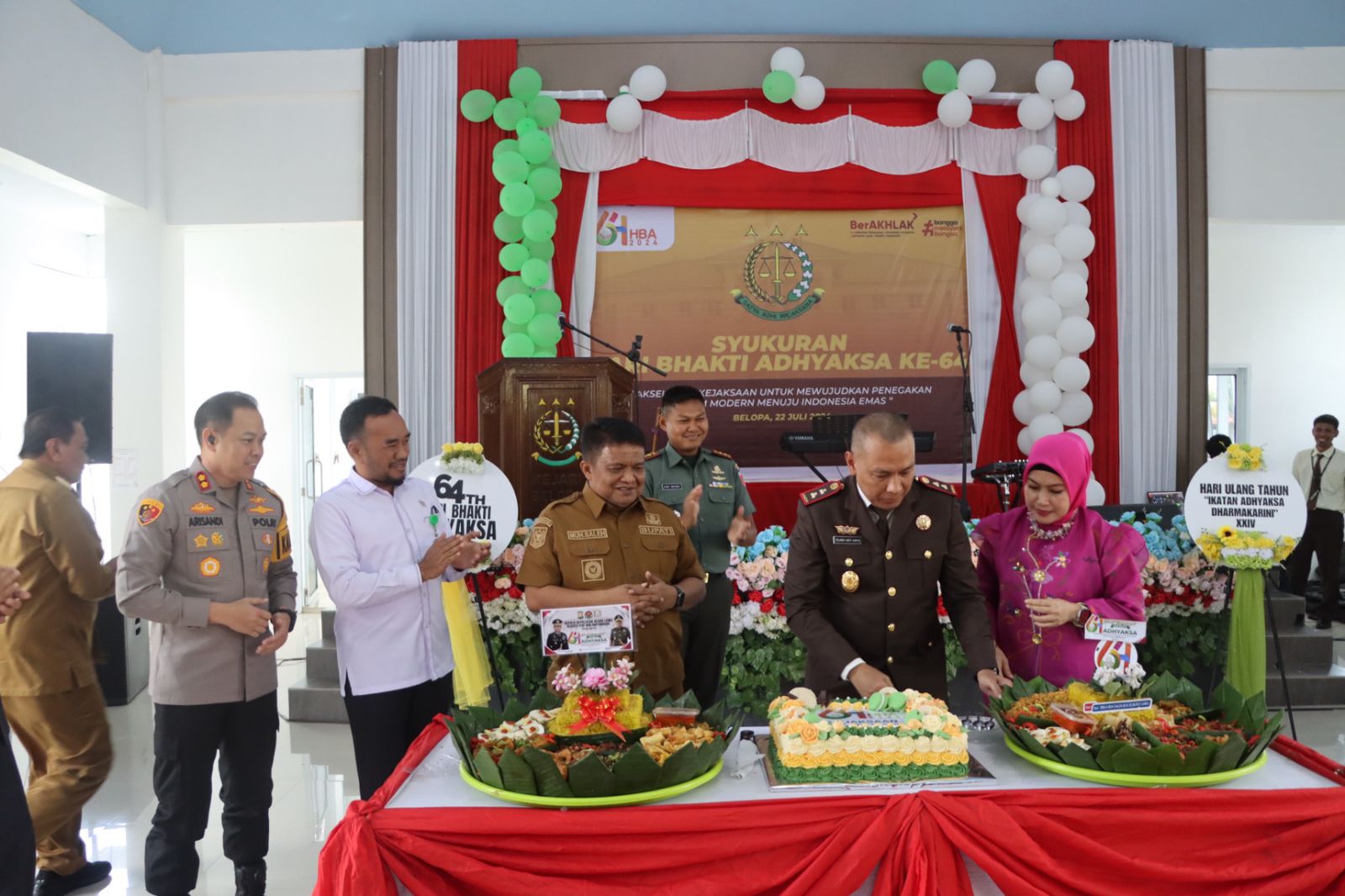 Luwu – Kapolres Luwu AKBP Arisandi, S.H., S.I.K., M.Si. sambangi Kantor Kejaksaan Negeri Luwu dan menghadiri syukuran peringatan Hari Bhakti Adhyaksa ke-64 yang bertempat di aula Baharuddin Lopa Kejari Luwu, Senin (22/7/2024).