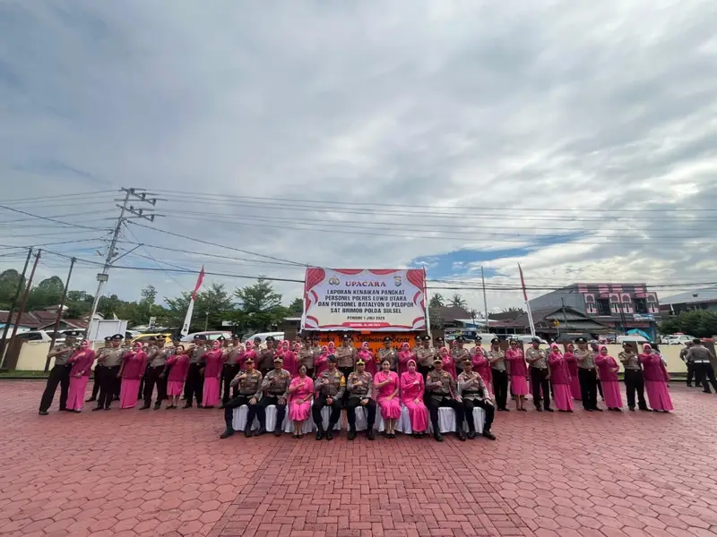 Dalam upacara tersebut, sebanyak 25 personel dari Polres Luwu Utara dan 13 personel dari Batalyon D Pelopor Sat Brimob Polda Sulsel naik pangkat satu tingkat lebih tinggi.