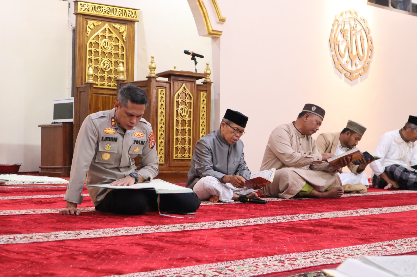 Dalam suasana yang penuh khidmat, Kapolres Majene bersama para personel serta jamaah masjid secara bergantian membaca Al-Quran dengan harapan mendapatkan keberkahan serta meningkatkan pemahaman agama.