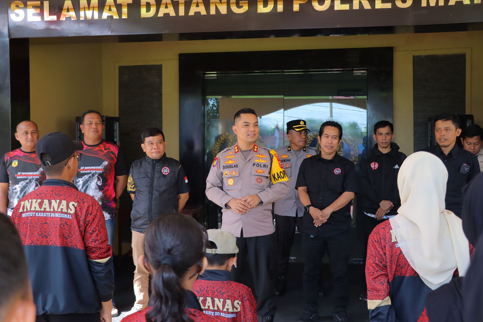 Maros, Sulawesi Selatan – Kapolres Maros, AKBP Douglas Mahendrajaya, S.H.,S.I.K.,M.I.K.,M.Tr.Opsla secara resmi melepas tim Inkanas (Institut Karate-Do Nasional) Polres Maros yang akan mengikuti Kejuaraan Inkanas tingkat Provinsi Sulawesi Selatan. Acara pelepasan berlangsung di Lobi Mapolres Maros, Jum’at (18/7).