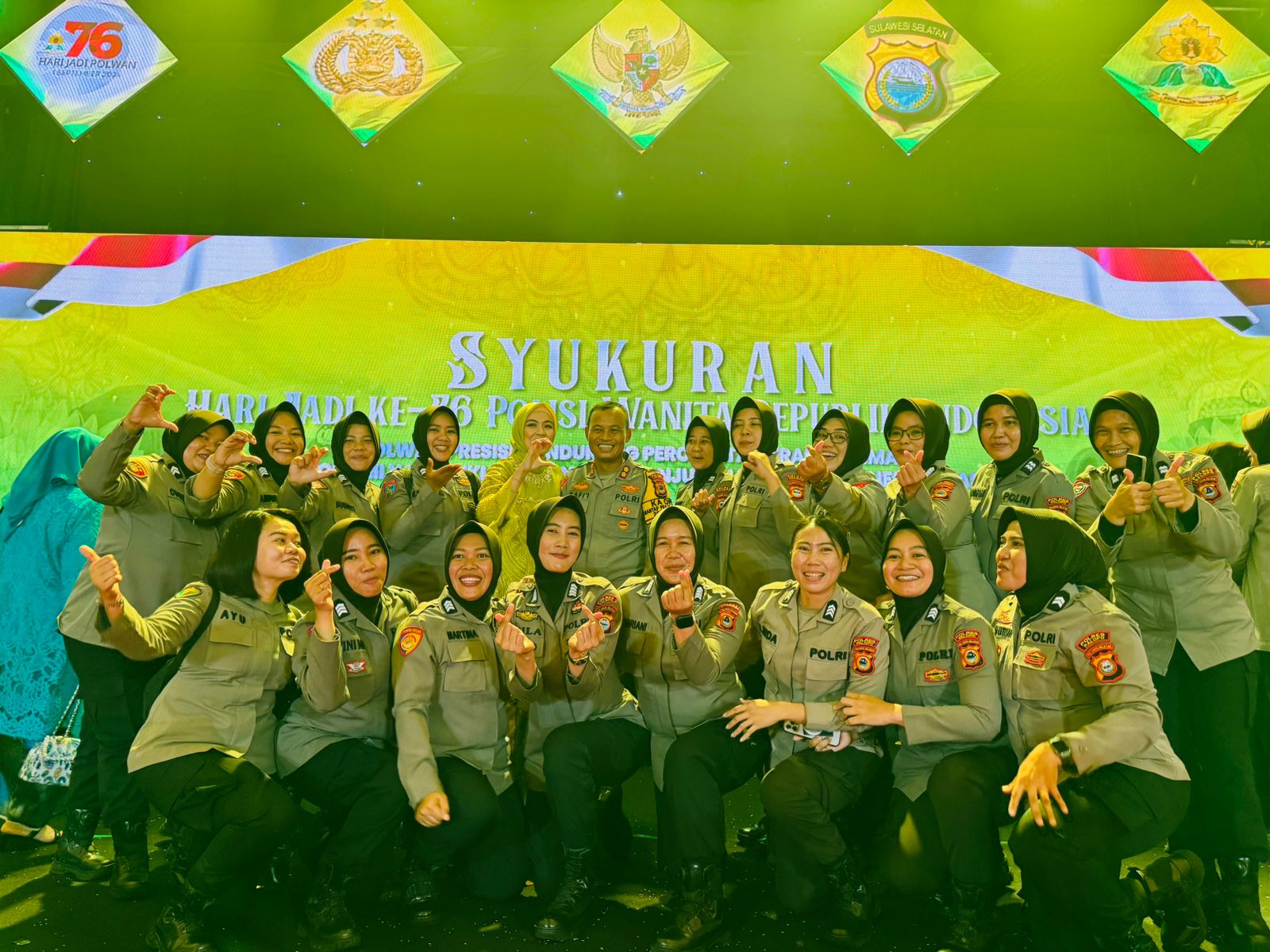 Kapolda Sulsel beserta jajarannya juga hadir dalam kegiatan itu. Pada kegiatan itu juga dilakukan pemotongan tumpeng serta Pemberian Pengharagaan Kapolda Sulsel Dalam Rangka Hari Jadi Polwan Ke 76 Kepada Polwan Tangguh dan Polwan Inspiratif.