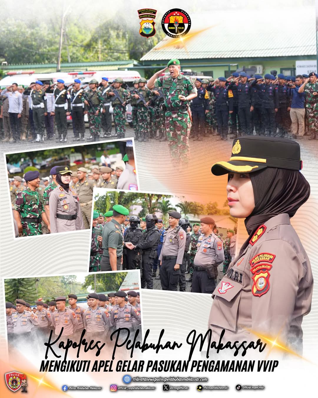 HUMDER – Kapolres Pelabuhan Makassar, AKBP Rise Sandiyantanti, S.H., S.I.K., M.Si. mengikuti kegiatan Apel Gelar Pasukan Pengamanan VVIP dalam rangka kunjungan kerja RI 4 Ibu Selvi Gibran Rakabuming di wilayah Kota Makassar, Sulawesi Selatan. Rabu (21/5/2025)