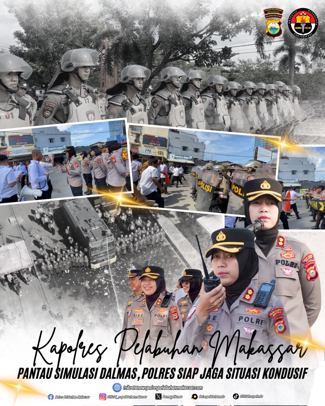 Kapolres Pelabuhan Makassar Pantau Simulasi Dalmas, Polres Siap Jaga Situasi Kondusif