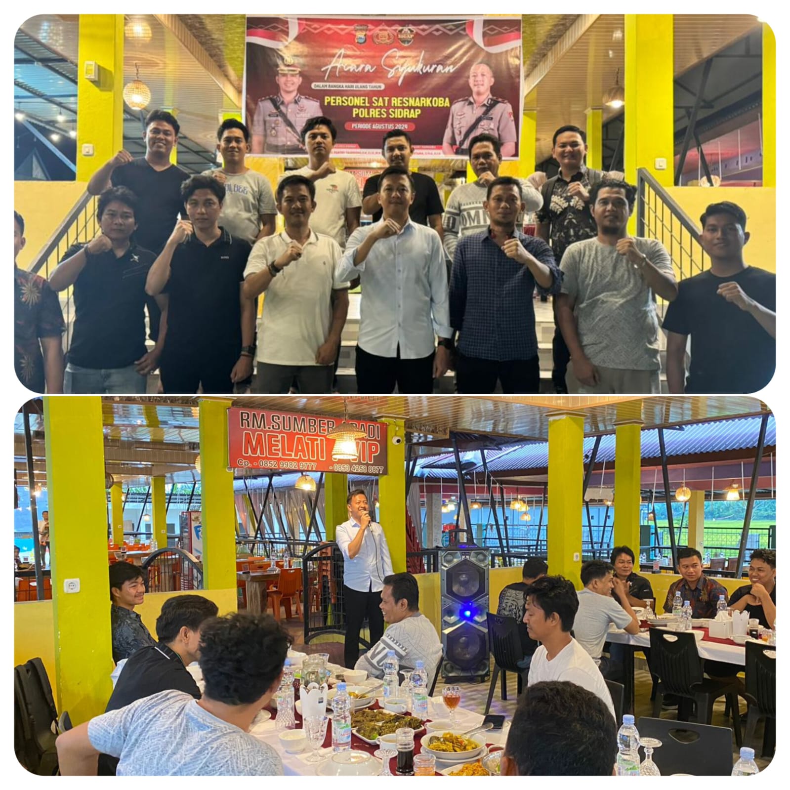Dalam acara ini, sebanyak 3 personel Sat Res Narkoba Polres Sidrap yang merayakan ulang tahun pada bulan Agustus 2024 mendapatkan sambutan istimewa. Kegiatan diisi dengan makan bersama. Moment ini tidak hanya sebagai bentuk perhatian dan penghargaan pimpinan terhadap anggota, tetapi juga sebagai upaya untuk membangun kekompakan dan soliditas di antara personel.