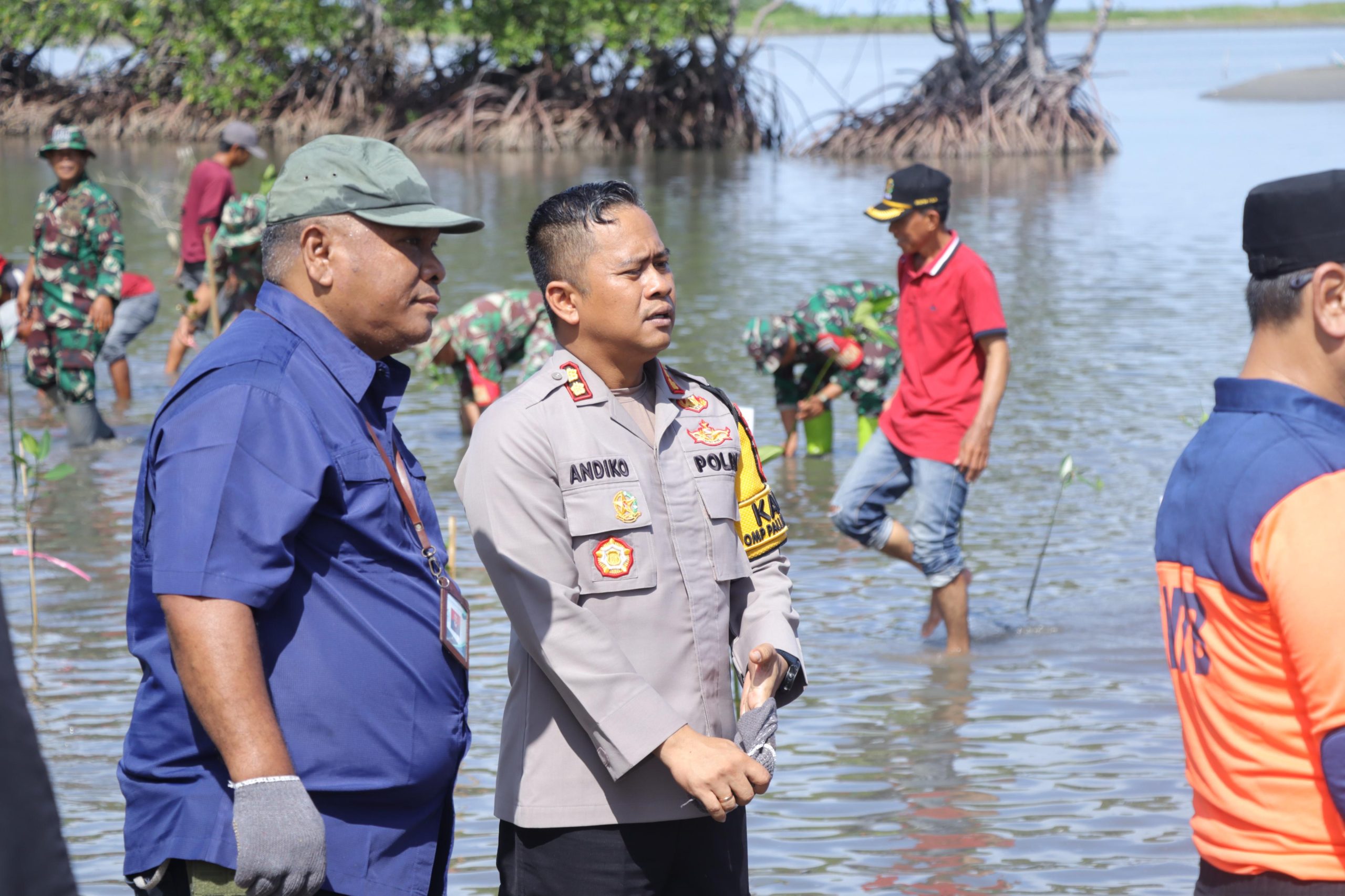 “Penanaman pohon mangrove ini tidak hanya bertujuan untuk menjaga lingkungan, tetapi juga sebagai langkah antisipasi dalam menghadapi bencana. Dengan mangrove yang kuat, kita dapat mencegah abrasi dan mengurangi dampak banjir di wilayah pesisir,” ujar AKBP Andiko