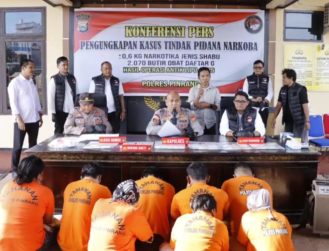 Dalam konferensi pers yang digelar Senin (30/6/2025) pukul 15.00 WITA di Mapolres Pinrang, Kapolres Pinrang AKBP Edy Sabhara Manggabarani, S.I.K menjelaskan bahwa dari operasi ini, pihaknya berhasil menyita barang bukti berupa 0,6 kilogram sabu dan 2.070 butir obat daftar G.