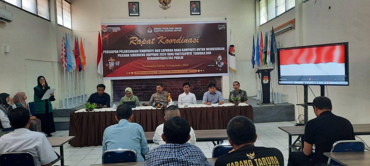 SIDRAP, – Kapolres Sidrap, AKBP Dr. Fantry Taherong, S.H, S.I.K, M.H, menekankan pentingnya keamanan dan ketertiban dalam pelaksanaan kampanye Pilkada serentak 2024 di Kabupaten Sidrap. Hal ini disampaikan melalui Wakapolres KOMPOL Ahmad Rosma, S.H. dan Kasat IK dalam rapat koordinasi persiapan kampanye dan pembahasan dana kampanye yang dihadiri oleh Komisi Pemilihan Umum (KPU) Kabupaten Sidrap.