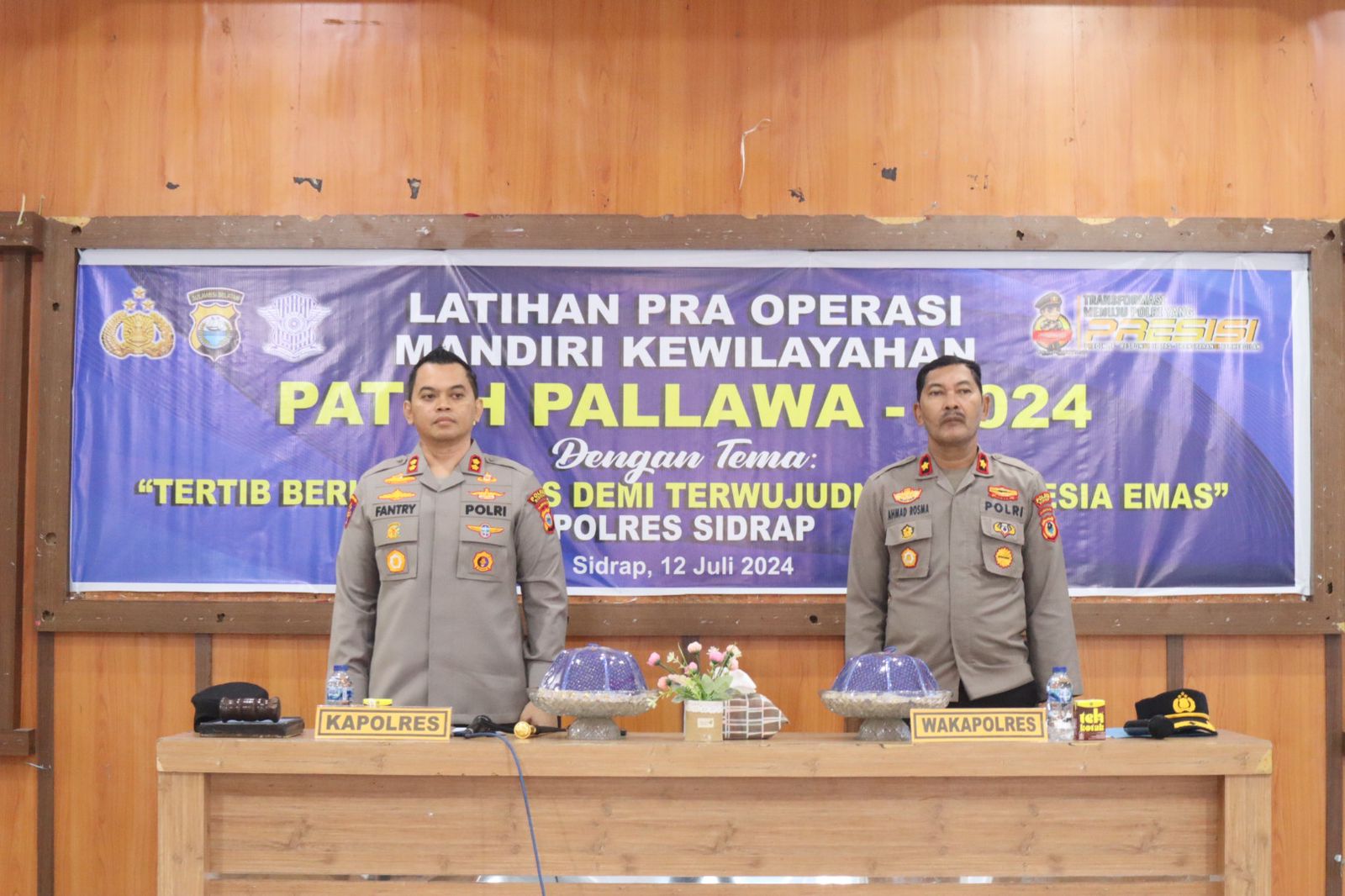 SIDRAP – Kapolres Sidrap, AKBP Dr. Fantry Taherong, S.H., S.I.K., M.H., membuka kegiatan latihan Pra Operasi Patuh Pallawa 2024 di lantai II Mapolres Sidrap, Jalan Bau Massepe, Nomor 1 Pangkajene, Sidrap, 12 Juli 2024.