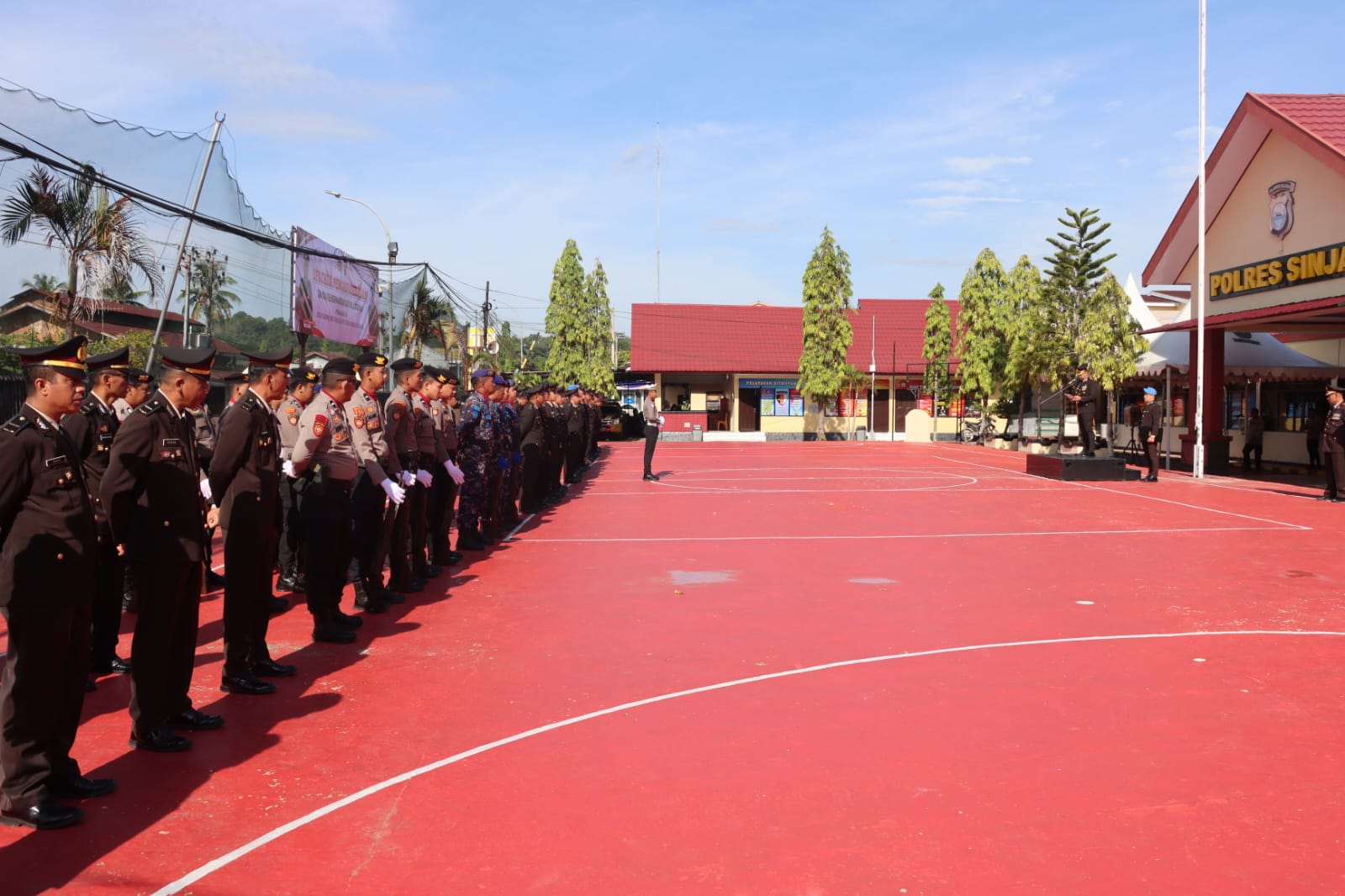 Upacara dipimpin langsung oleh Kapolres Sinjai AKBP Jamal Fathur Rakhman, S.I.K., M.H., serta dihadiri oleh Pejabat Utama Polres Sinjai, para Kasat, Kapolsek, perwira staf, dan seluruh personel Polres Sinjai sebagai peserta upacara.