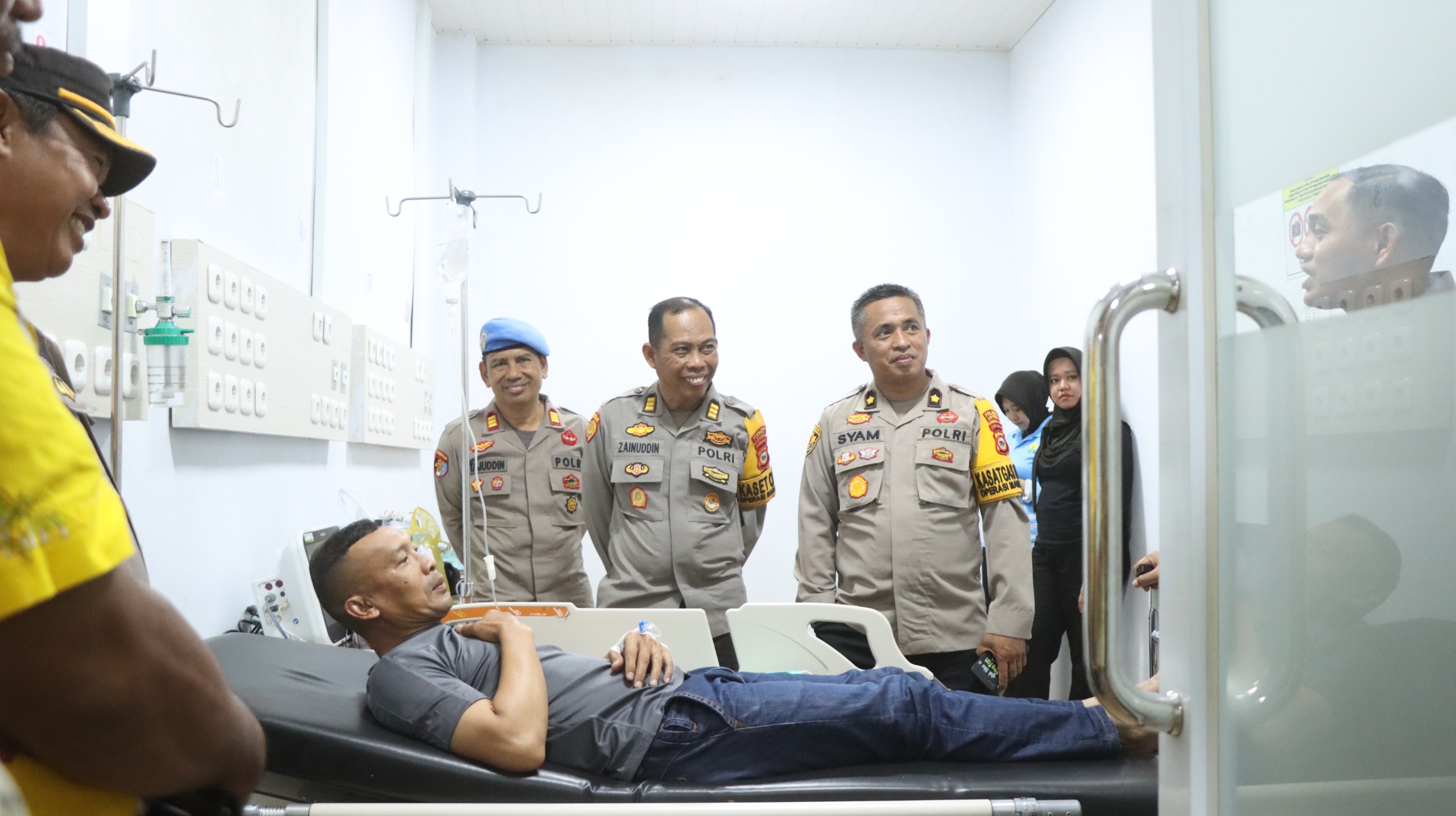 Bentuk Kepedulian Pimpinan Terhadap Anggota, Kapolres Soppeng AKBP Dr. H. Muhammad Yusuf Usman S.H.,S.I.K.,M.T CIPA di dampingi Pejabat Utama Kunjungi Anggota Yang terbaring sakit di RSUD Latemmamala Soppeng,rabu 15 februari 2024.