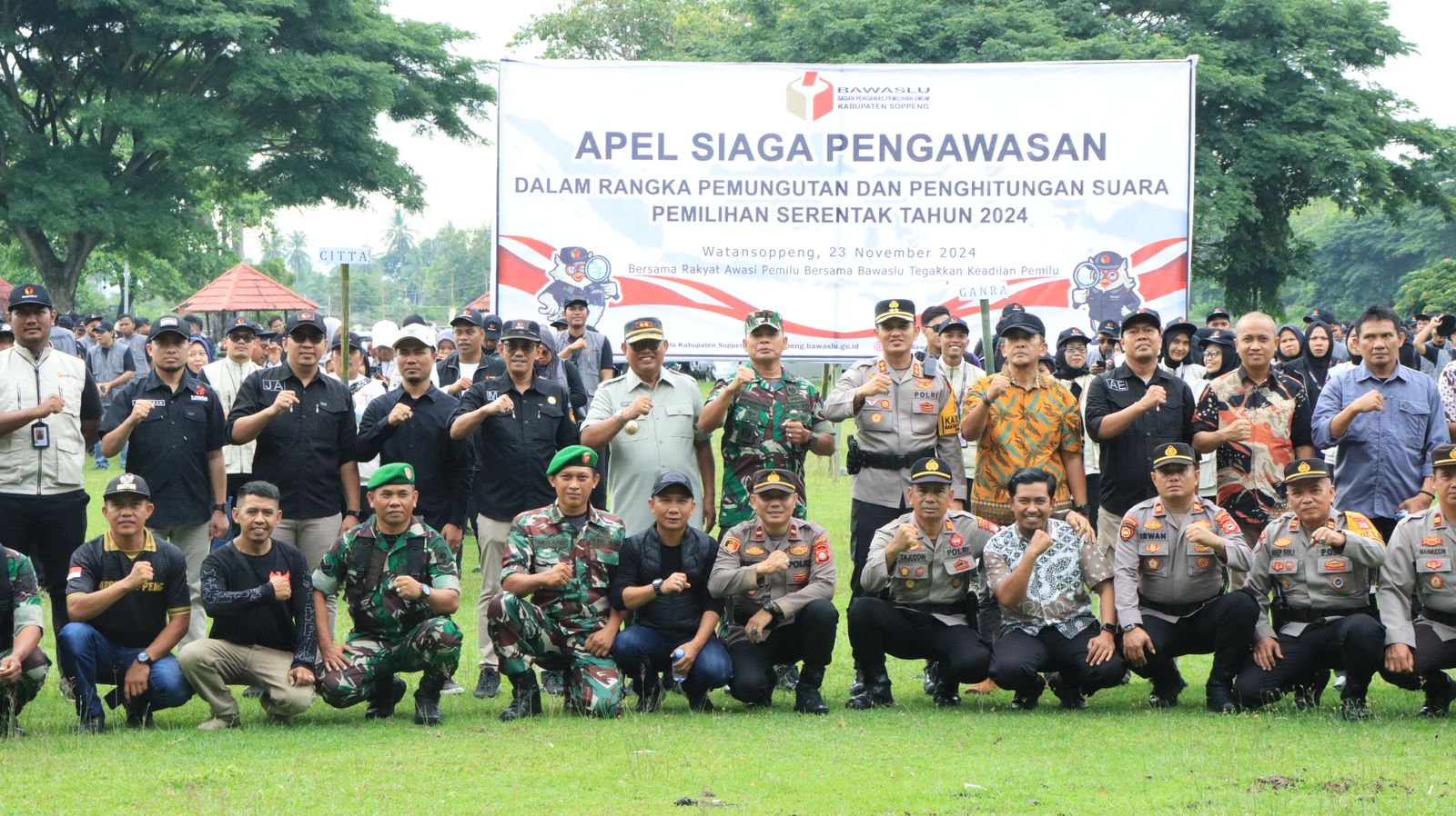 SOPPENG – Kapolres Soppeng AKBP Dr H.Muh Yusuf Usman SH.,SIK.,MT.,CIPA hadiri Apel Siaga Pengawasan dalam rangka pemungutan dan penghitungan suara pemilihan serentak tahun 2024 di KWO Waduk Ompo Kel.Ompo Kecamatan Lalabata Kab.Soppeng .Sabtu 23/11/2024.