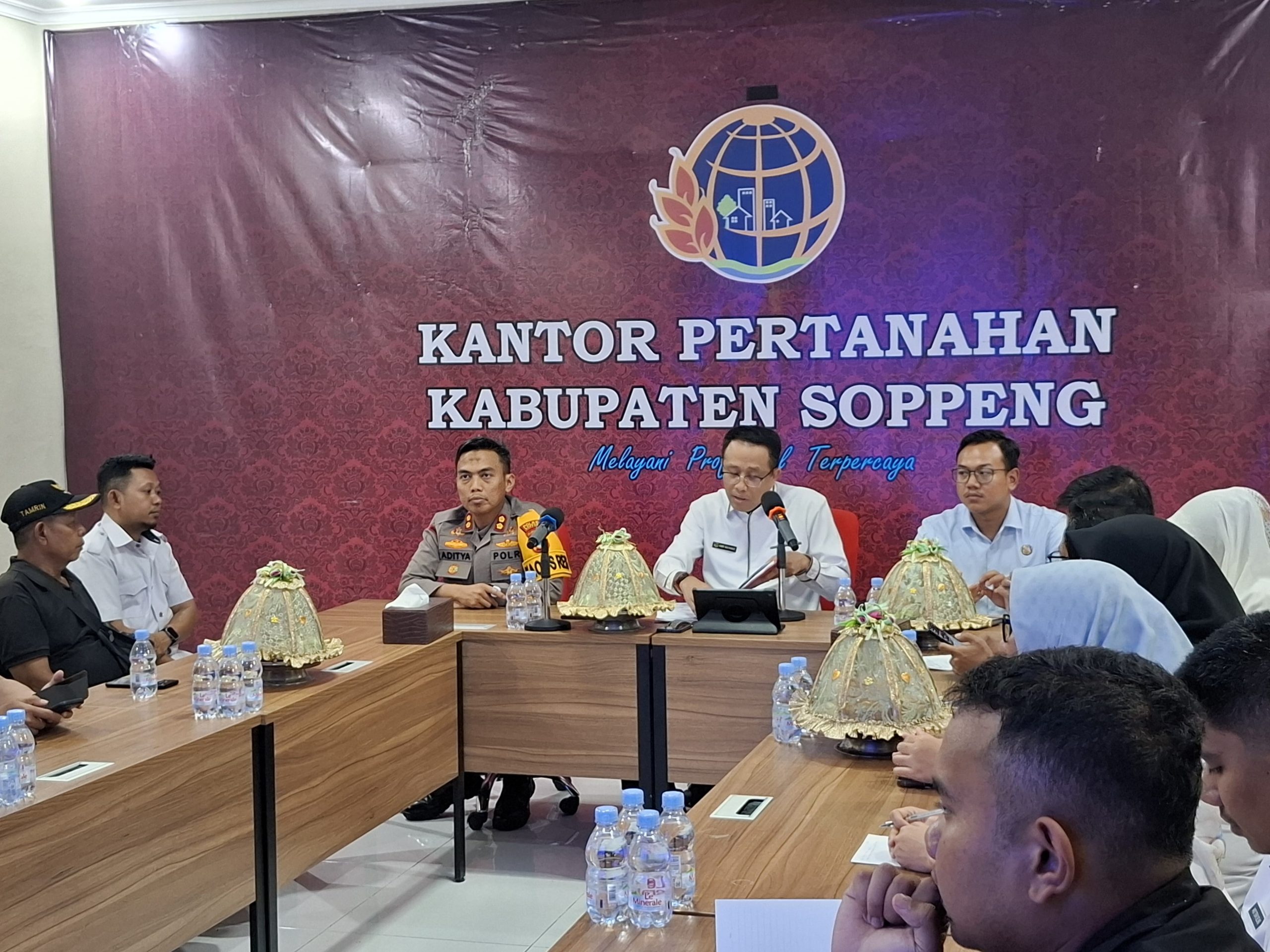 Kapolres Soppeng menghadiri rapat koordinasi di Ruang Rapat Kantor Pertanahan Kabupaten Soppeng. Rapat ini membahas permohonan Hak Atas Tanah untuk Hak Milik Perorangan yang terletak di Desa Maccile, Kecamatan Lalabata, Kabupaten Soppeng. Rabu, 7 Mei 2025, Pukul 14.00 Wita.
