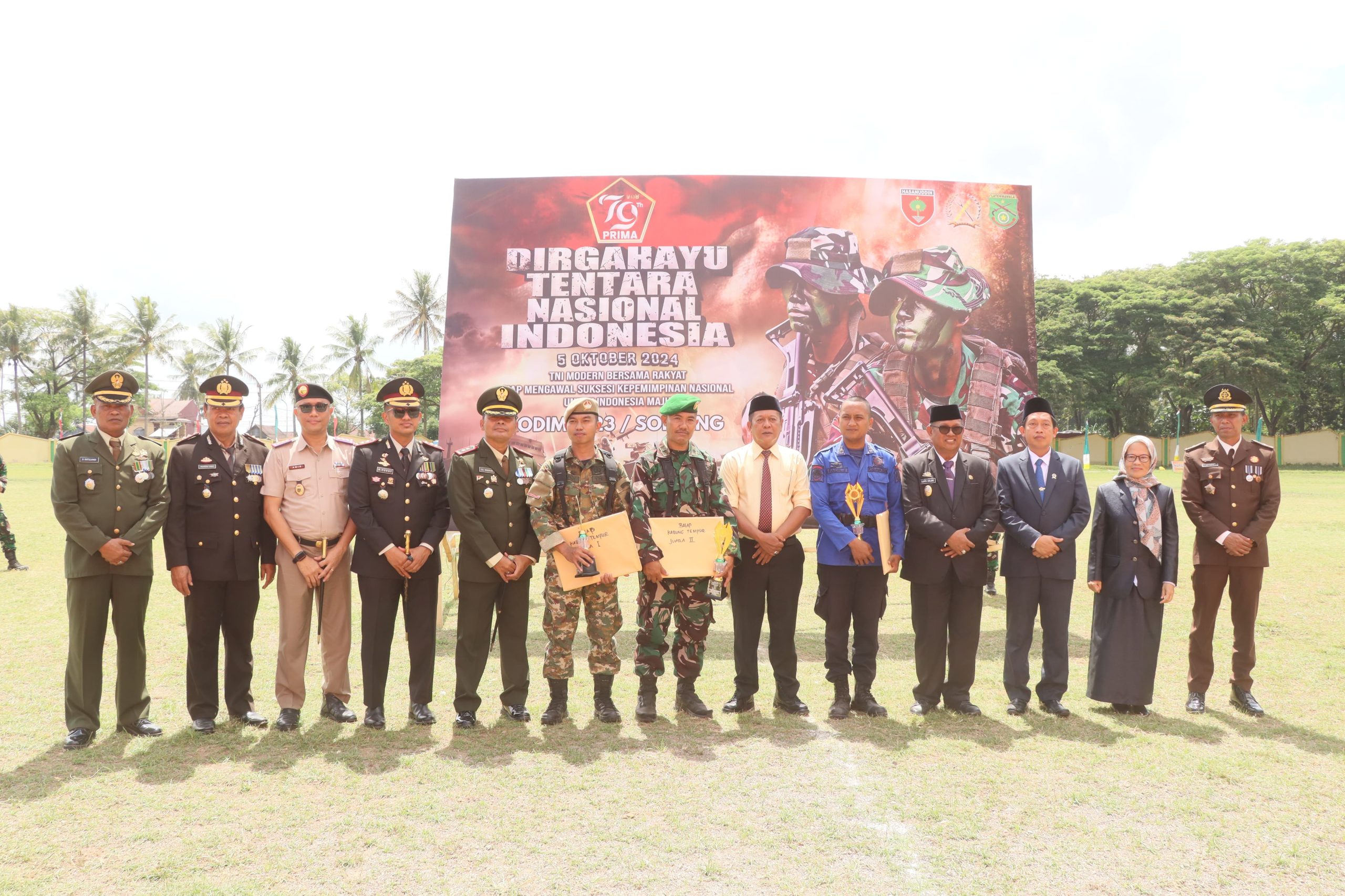 Upacara peringatan HUT ke 79 TNI di Kodim 1423 Soppengi, dirangkaikan dengan Lomba Olahraga Tradisional antar intansi yakni lomba Tarik tambah tempur dan Lomba Balap Terompa.