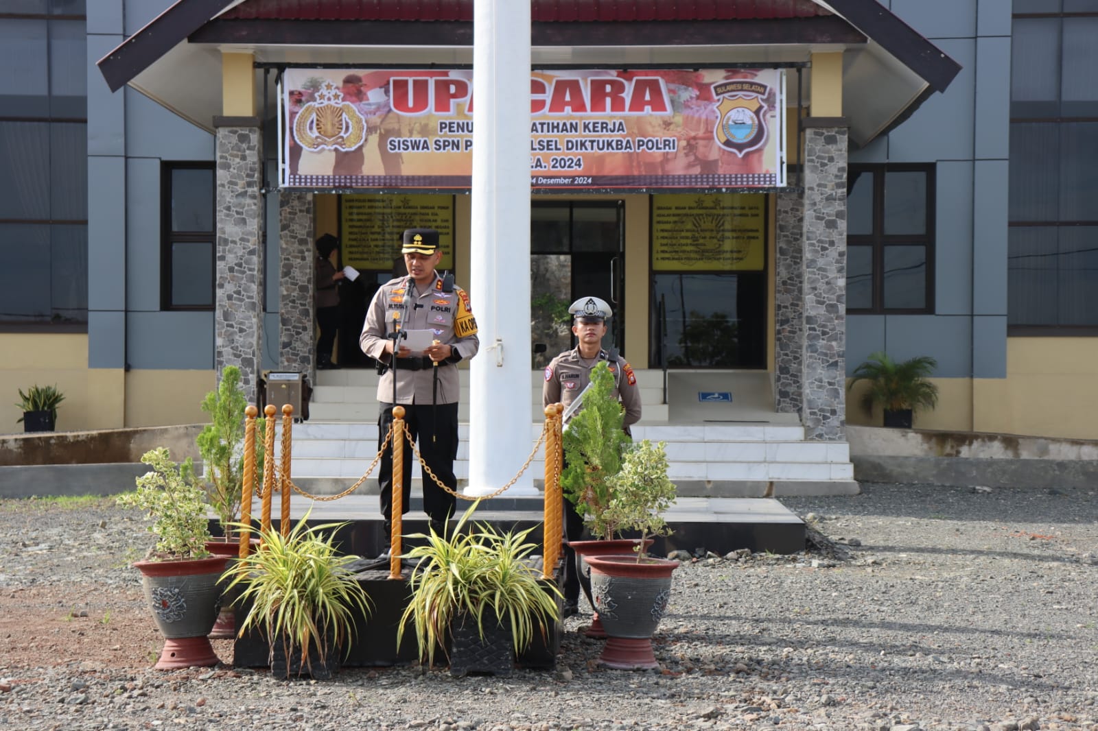 SOPPENG – Polres Soppeng menggelar upacara penutupan Latihan Kerja Siswa SPN Polda Sulsel Diktukba Polri Gel ll T.A. 2024.bertempat d halaman Mapolres Soppeng ,Rabu 4 Desember 2024.