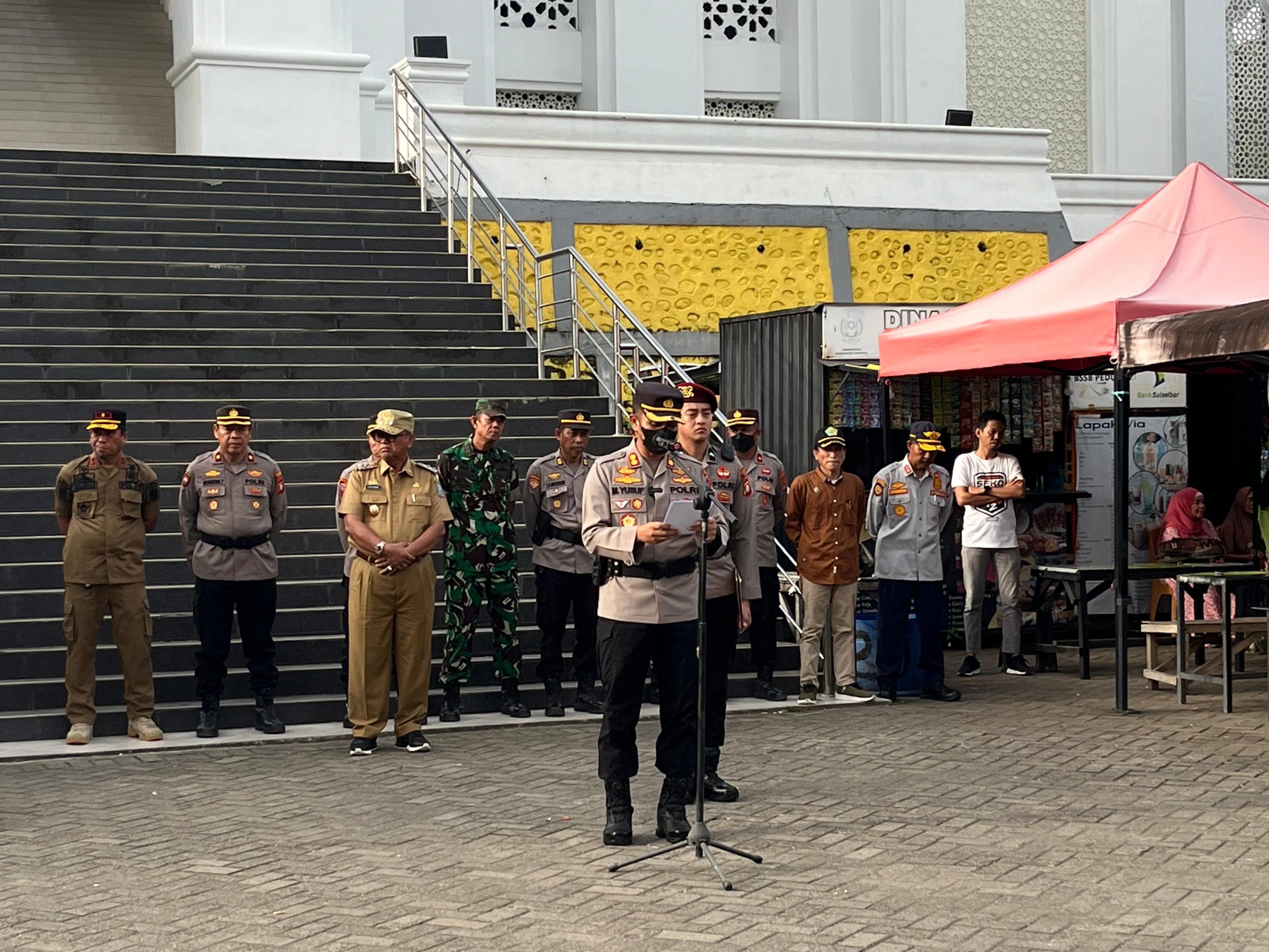SOPPENG – Ratusan personil Gabungan TNI -Polri dan Pemda melaksanakan apel persiapan pengamanan malam takbiran dan Shalat Eid Hari raya Idul Adha 1445 H. di Pelataran Masjid Raya Darussalam Watansoppeng Minggu 16 Juni 2024 Sore.