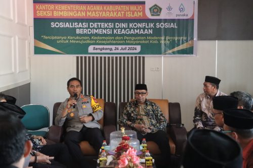 Kedatangan Kapolres bersama pejabat utama Polres Wajo didampingi Kasubag Tata Usaha Kemenag Kabupaten Wajo H. Abd. Hafid, disambut langsung pimpinan, para Da’i dan Ketua Ormas Islam.