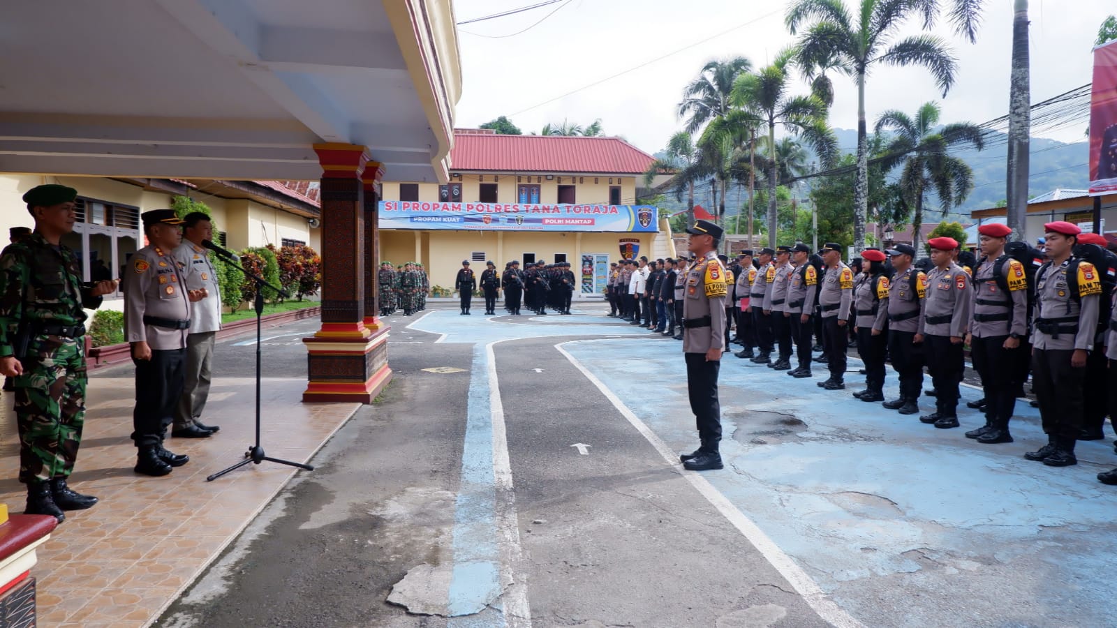 Apel yang dipimpin Kapolres Tana Toraja AKBP Malpa Malacoppo di dampingi Dandim 1414/Tator dan Kasat Pol PP yang mewakili Bupati Tana Toraja beserta pejabat utama Polres Tator, ketua KPU, Ketua Bawaslu, Kesbang Pol, peserta apel yang terdiri dari Pleton personil pengamanan TPS Polres Tator, Pleton TNI, Pleton Brimob, pleton Linmas, pleton Satpol PP, Pleton Dishub dan kesehatan.