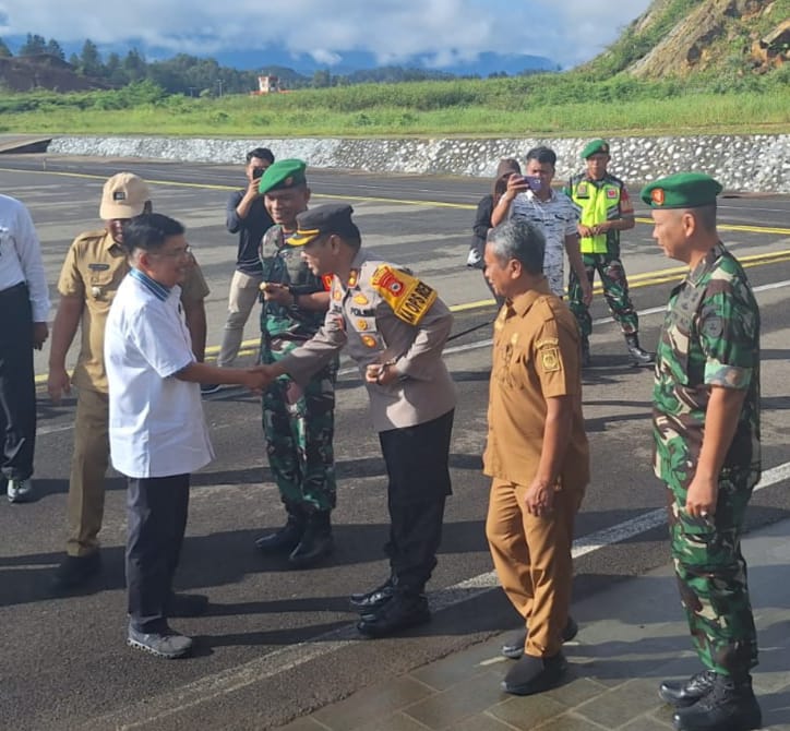 “Hari ini Kami bersama Bpk. Bupati Tana Toraja, Dandim 1414/Tator menyambut kedatangan Mantan Wapres beserta rombongan di bandara Buntu Kunik Kabupaten Tana Toraja, selanjutnya rombongan menuju ke PLTA Malea dan dikawal ketat oleh personil yang telah kami ploting termasuk pengamanan jalur dan rute yang di lalui rombongan”, ungkap Kapolres Tana Toraja