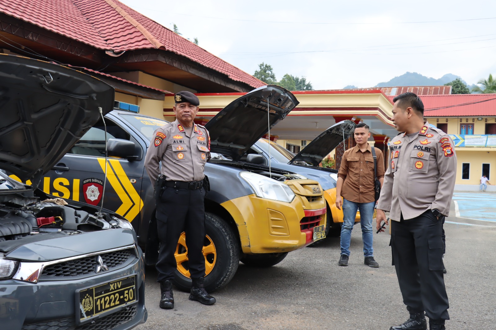 TANA TORAJA – Kapolres Tana Toraja AKBP Malpa Malacoppo melakukan pemeriksaan kendaraan dinas baik R2 maupun R4, alut dan alsus dalam rangka kesiapan pemilihan Kepala Daerah (pilkada) serentak 2024 di Kabupaten Tana Toraja.
