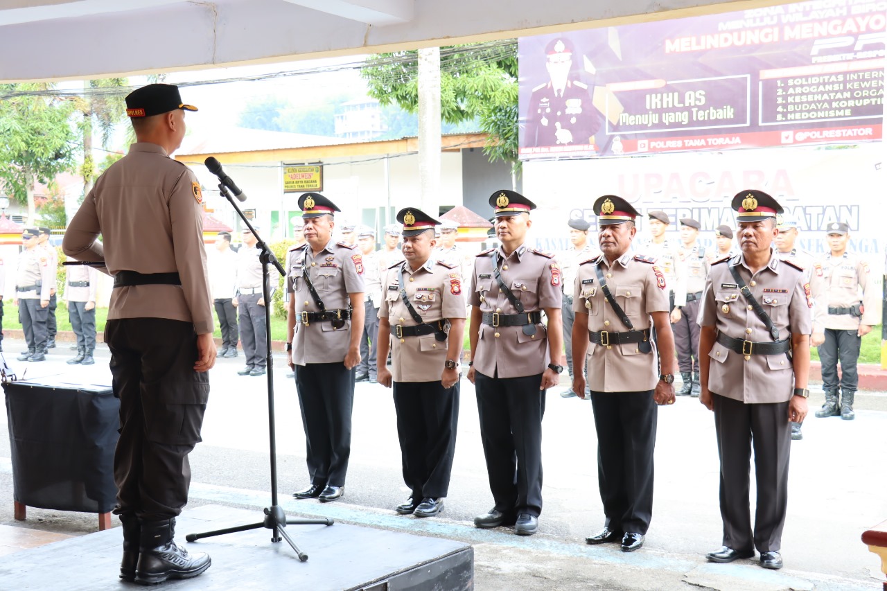 Kapolres Tana Toraja dalam amanatnya menyampaikan mutasi jabatan merupakan suatu peristiwa yang biasa terjadi di lingkungan Polri dan pasti terjadi dengan tujuan terpeliharanya kesegaran dan Kesehatan organisasi yang selaras dengan pencapaian keberhasilan tujuan organisasi.