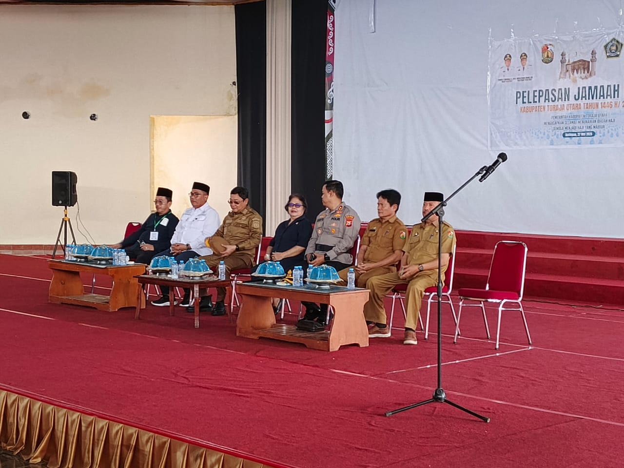 Sebanyak 19 Jamaah Calon Haji asal Kabupaten Toraja Utara resmi dilepas untuk berangkat menuju Tanah Suci. Prosesi pelepasan dilaksanakan di Art Center Alun-alun Rantepao, Toraja Utara, pada Selasa (27/05/2025).