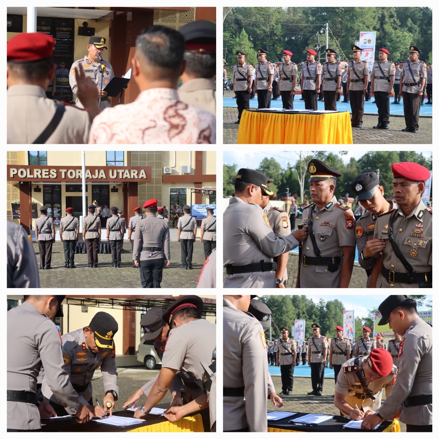 Polres Toraja Utara Polda Sulsel menggelar upacara serah terima jabatan (Sertijab) dan Pelantikan sejumlah pejabat yang digelar di Halaman Mapolres Toraja Utara, Senin (16/06/2025) pagi.