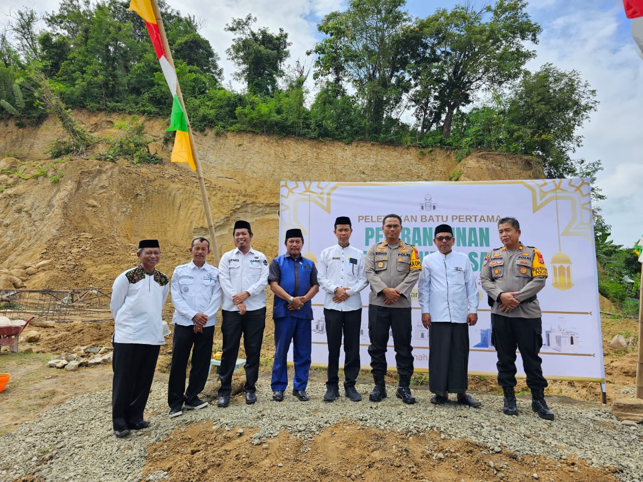 WAJO _ Kapolres Wajo AKBP Muhammad Rosid Ridho, S.I.K, menghadiri acara peresmian sekaligus peletakan batu pertama pembangunan Masjid Nurus Sa’dah di jalan Seroja, depan Kantor Pusat Layanan Haji dan Umroh Terpadu Kementrian Agama Kabupaten Wajo. Rabu (31/7/2024)