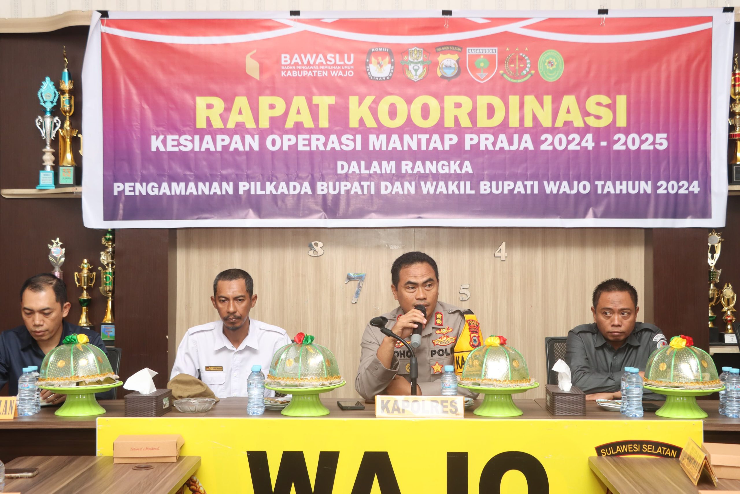 “Rapat koordinasi ini sebagai pemetaan awal potensi konflik yang bisa saja terjadi pada pelaksanaan tahapan Pilkada seperti masa kampanye, pemungutan suara, perhitungan suara sampai dengan penetapan pasangan yang terpilih”, Ujar Kapolres Wajo.