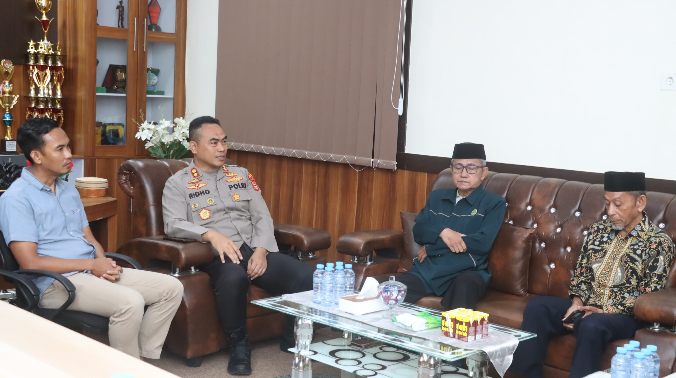 sejumlah santri, guru dan petinggi As’adiyah bertemu Kapolres Wajo, AKBP Muhammad Rosid Ridho di ruangannya.