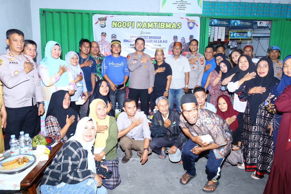 Makassar- Kapolrestabes Makassar Kombes Pol Arya Perdana SH, SIK, M.Si menggelar kegiatan Ngopi Kamtibmas Jalan Kandea samping pos mitigasi Kelurahan Bontoala Kecamatan Bontoala Kota Makassar pada Senin (26/05/2025) pukul 20.00 Wita