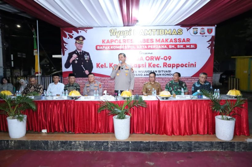 Makassar – Kapolrestabes Makassar, Kombes Pol Arya Perdana, S.H., S.I.K., M.Si, membangun kedekatan dengan masyarakat melalui program “Ngopi Kamtibmas”. Kali ini, warga Kelurahan Kassi-Kassi, Kecamatan Rappocini, menjadi tuan rumah dari forum dialog santai namun penuh makna tersebut, yang digelar pada Senin malam (28/7/2025).