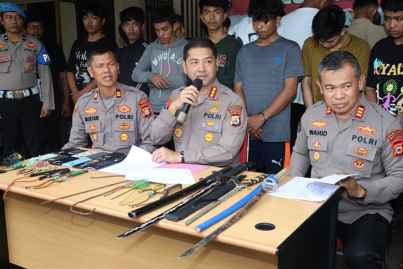 Makassar- Jajaran Polrestabes Makassar berhasil menangkap 19 orang pelaku geng motor bersenjata tajam yang meresahkan dan sering melakukan terror, penyerangan dan tawuran di wilayah hukum Polrestabes Makassar.