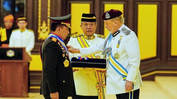 Jakarta – Kapolri Jenderal Listyo Sigit Prabowo menerima penghargaan Panglima Gagah Pasukan Polis dari Kerajaan Malaysia. Penghargaan itu diserahkan langsung oleh Raja Malaysia Kebawah Duli Yang Maha Mulia Seri Paduka Baginda Yang Dipertuan Agong XVII Sultan Ibrahim Ibni Sultan Iskandar.