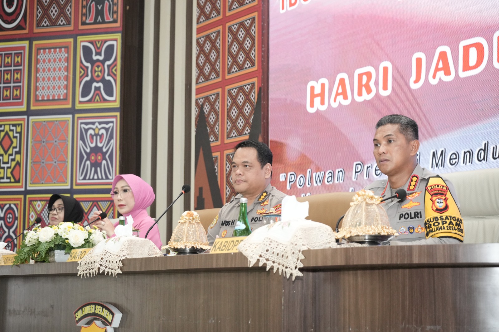 “Rekan-rekan Polwan sekalian yang hadir saat ini agar berhati-hati dalam bermedia social, sesuaikan jabatan dan tanggungjawab yang diembang saat ini, media social bisa sebagai influnsere positif dengan silahkan manfaatkan ruang positif dengan menggelorakan prestasi tapi bisa juga merusak jika kita tidak bijak dalam menggunakannya. Dan terkahir saya sampaikan bahwa saat ini pula Bapak Kapolda Sulsel telah menggelorakan kesetaraan gender kepada POlwan, silahkan berprestasi dengan membuat berbagai terobosan kreatif yang dapat mengangkat citra Polri ditengah-tengah masyarakat. Tutup Karo SDM.