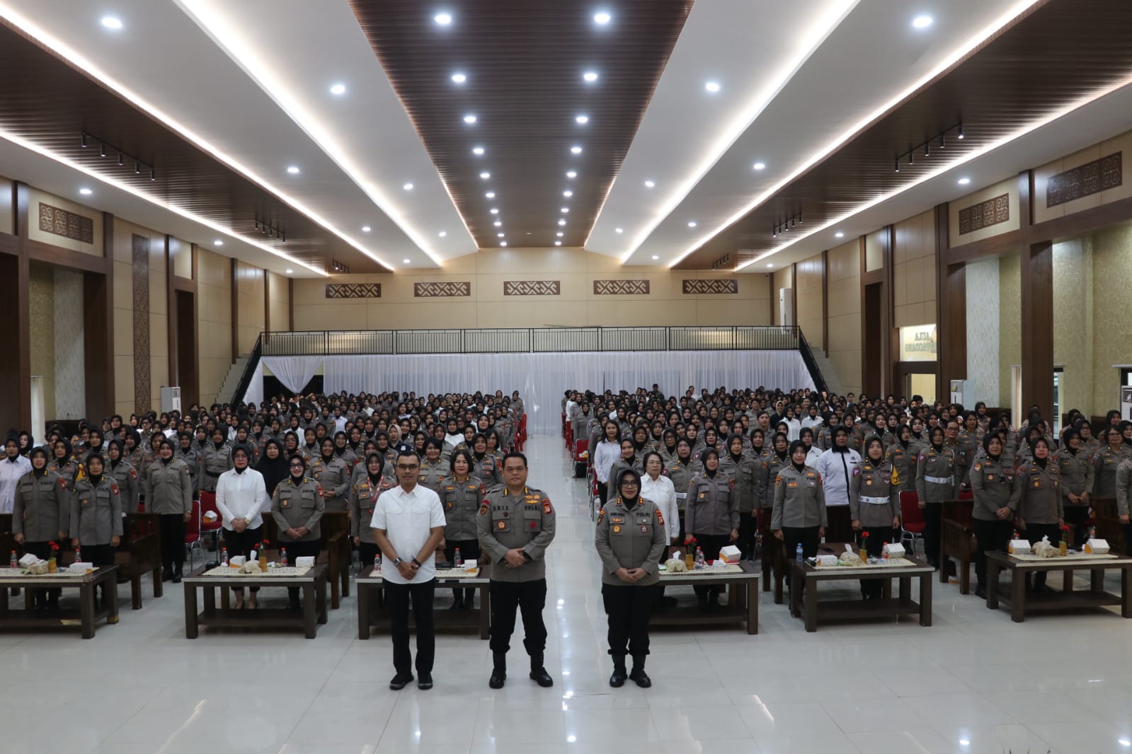 Makassar-Sulsel, Kepala Biro SDM Polda Sulsel Kombes Pol Aris Haryanto memberikan arahan kepada 1.081 polisi wanita (Polwan) di Gedung Aula Andi Mappauddang Polda Sulsel, Rabu (24/1/2024).