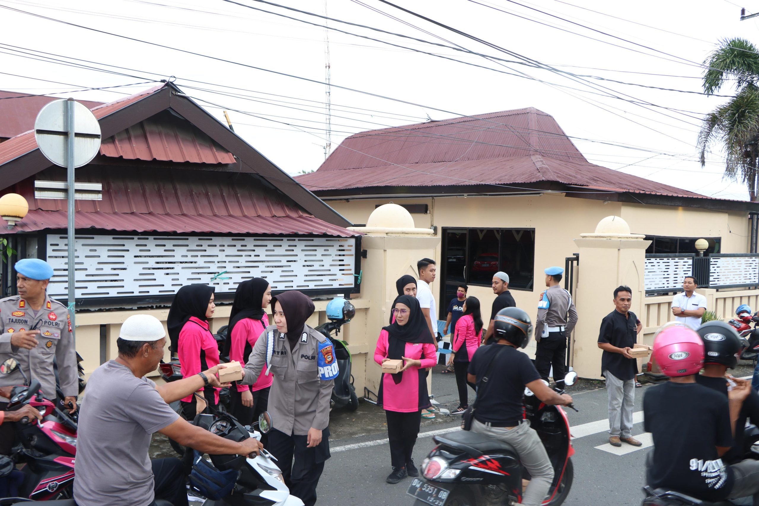 Kasat Intelkam Polres Soppeng Bersama Personil dan Bhayangkari Bagi Takjil Jelang buka Puasa