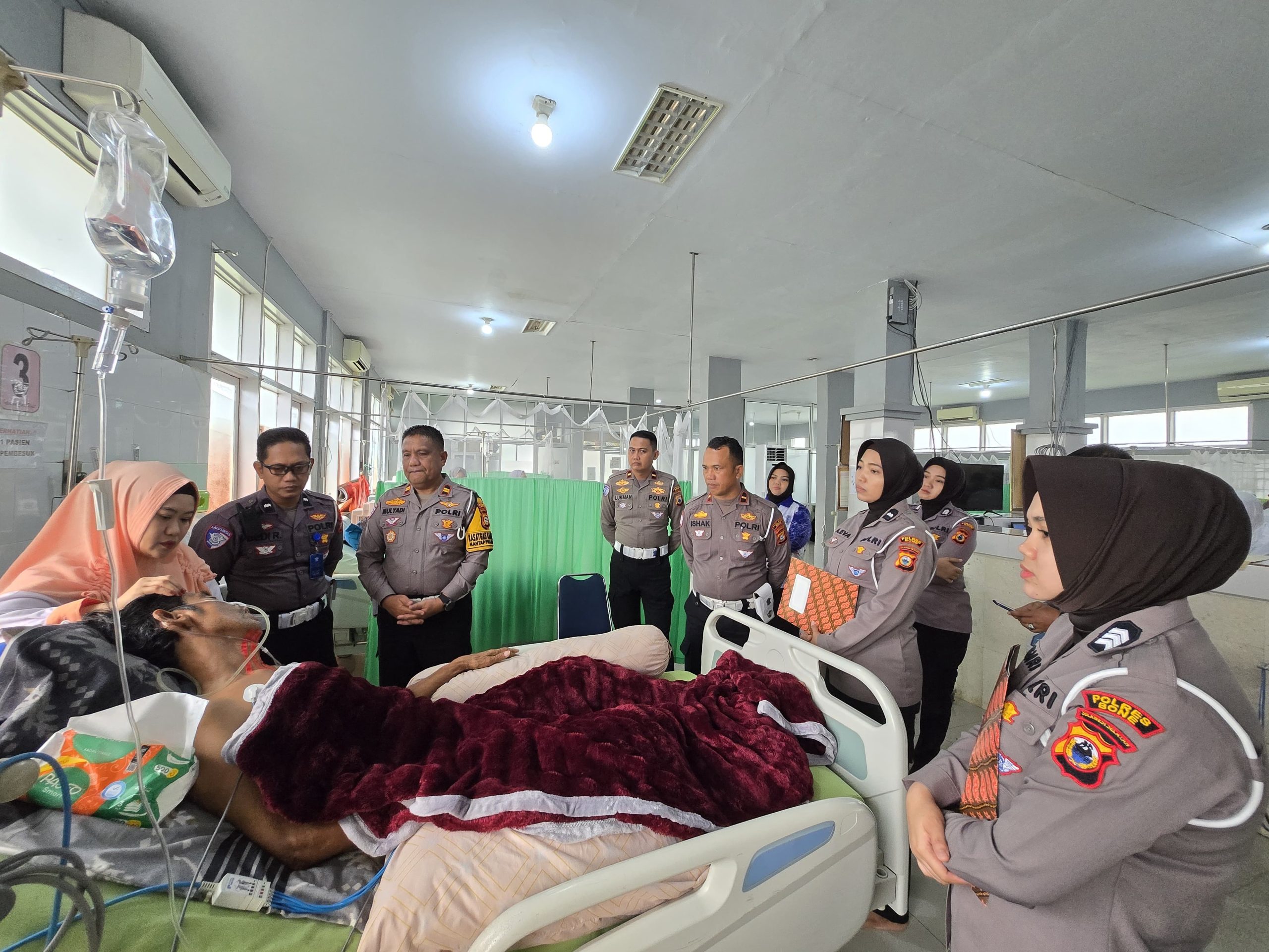 Menjenguk dan memberikan tali asih kepada ayahanda Bripda A. Syahrul dan Ayahanda Aipda Dedi Rianto yang sedang dirawat, terbaring di ruang ICU Rumah Sakit Umum Daerah (RSUD) Tenriawaru Bone, Kamis pagi (19/12/2024).