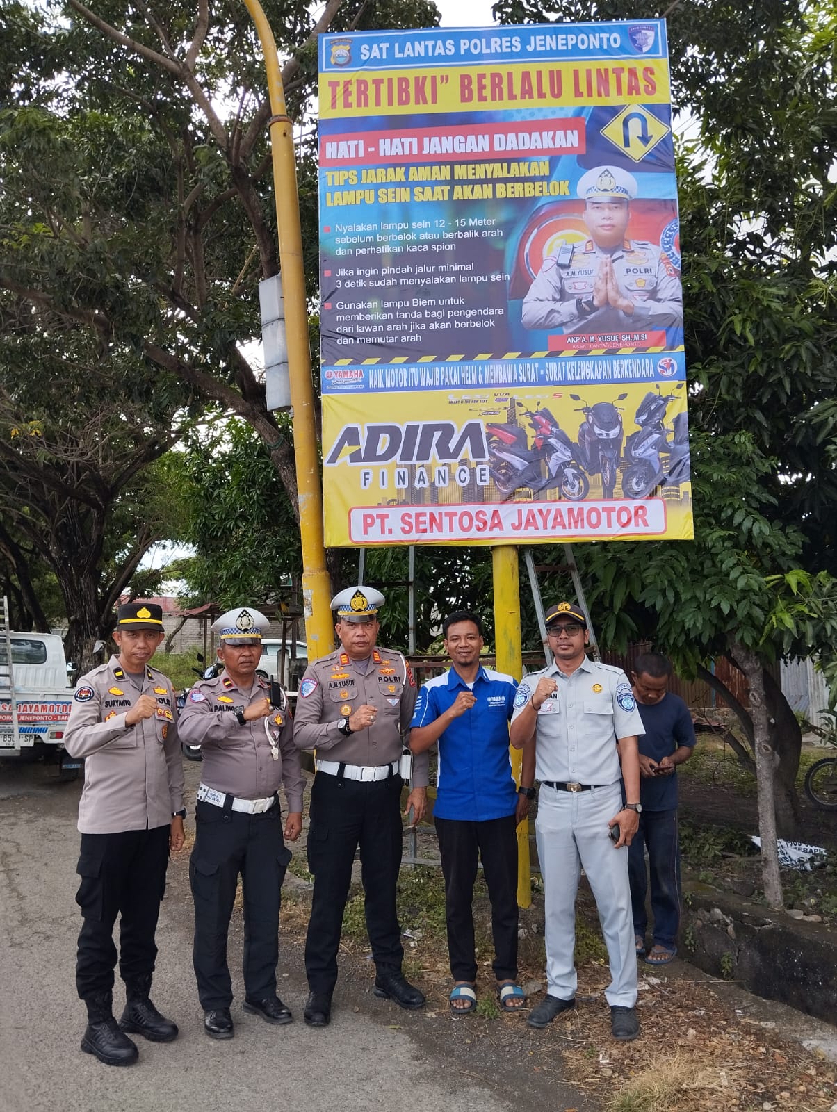 Jeneponto, 27 April 2026 — Satuan Lalu Lintas (Satlantas) Polres Jeneponto kembali menunjukkan komitmennya dalam meningkatkan keselamatan berlalu lintas melalui kegiatan pemasangan baliho atau papan bicara di wilayah Kabupaten Jeneponto.