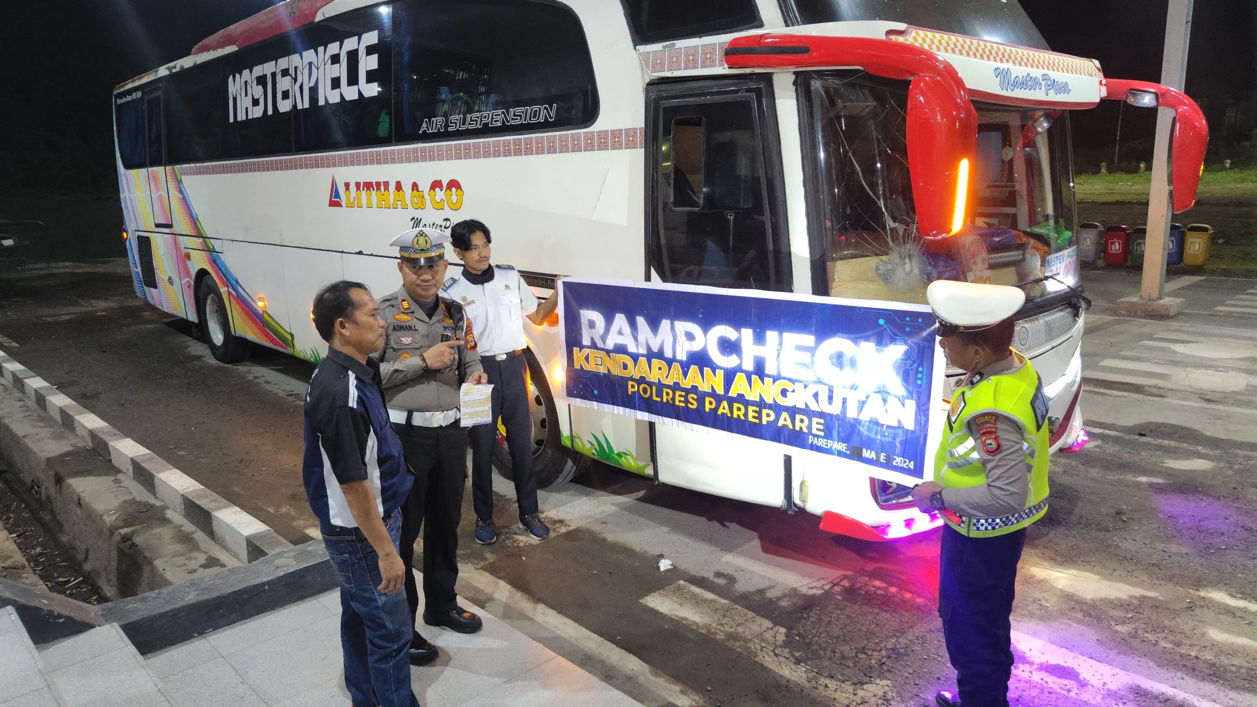 Parepare — Dalam upaya cegah dini terjadinya kecelakaan lalu lintas pada kendaraan yang memuat banyak orang atau kendaraan angkutan umum, khususnya spesifikasi pada angkutan umum jenis bus yang memuat banyak orang dalam hal ini angkutan kota dalam provinsi (AKDP), Jajaran Sat Lantas Polres Parepare kembali melakukan langkah atau kegiatan kepolisian dalam bentuk Ram Check dan sosialisasi serta himbauan kepada pengemudi mobil bus (AKDP) terkait waktu jam mengemudi guna keamanan, keselamatan dan kelancaran lalulintas di jalan